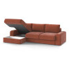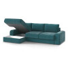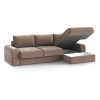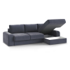 Чтобы разложить диван, не требуется особых усилий. Он легко превращается в просторную кровать, которая подходит для ежедневного сна. В оттоманке и основной части предусмотрены ящики для белья и постельных принадлежностей.