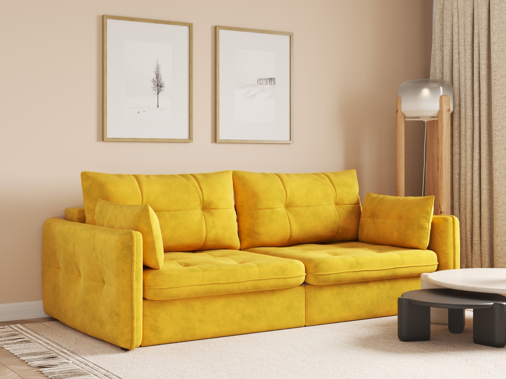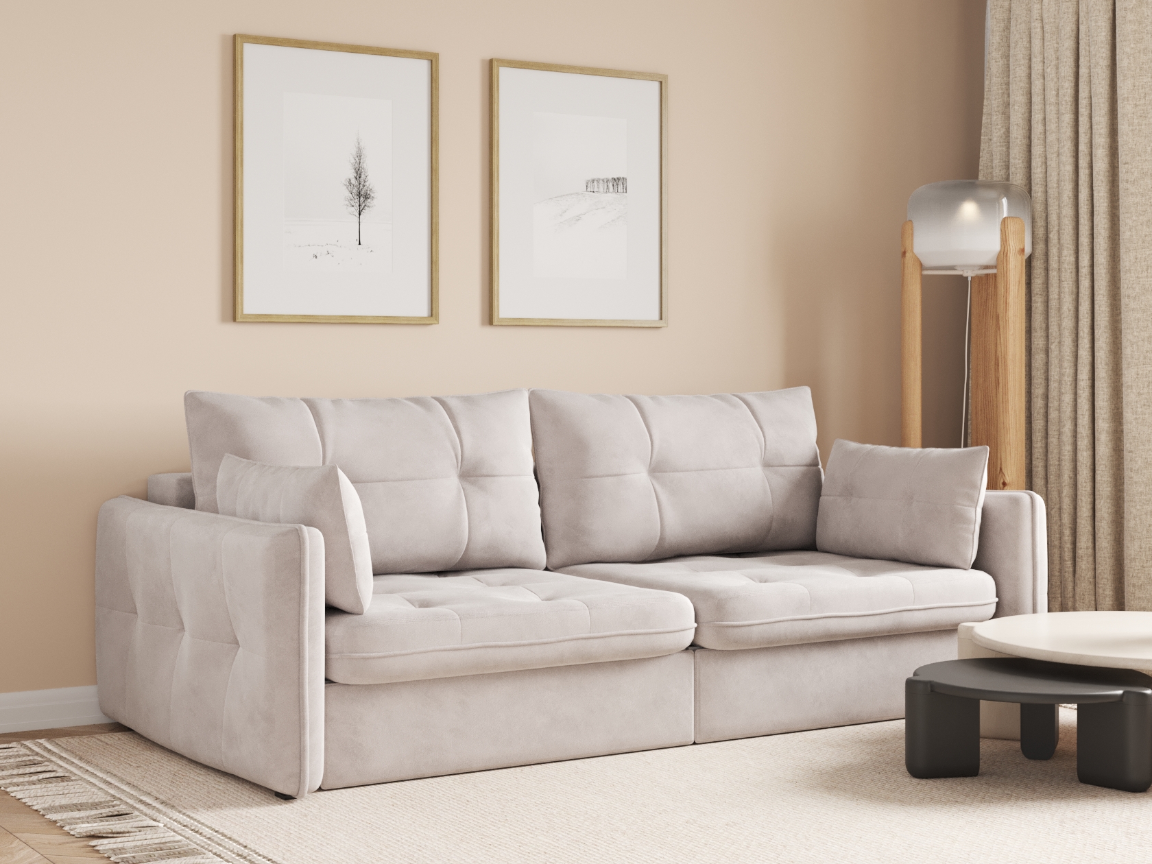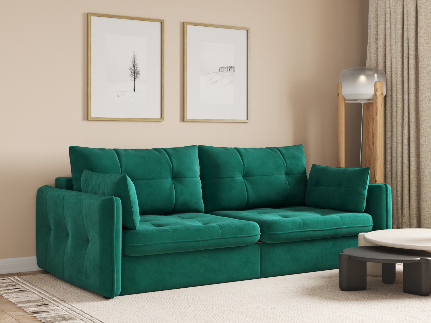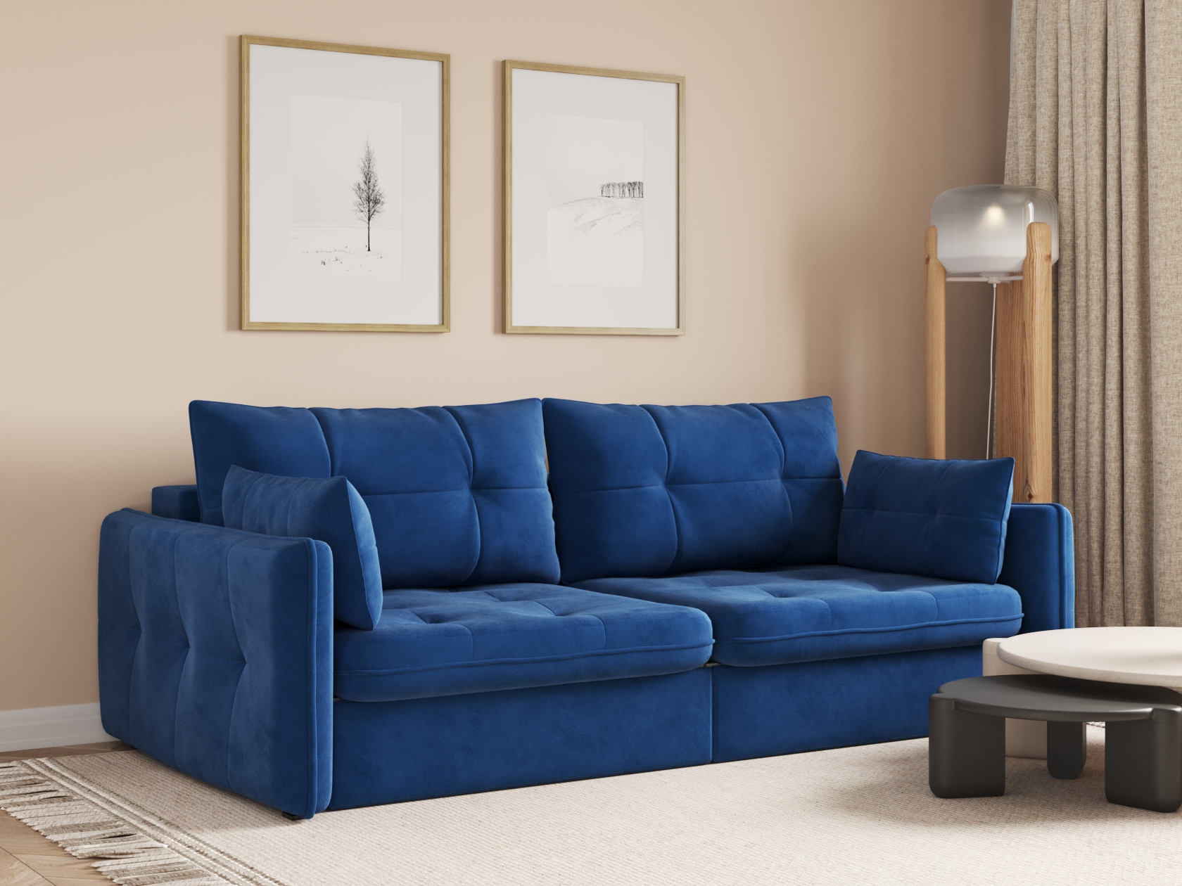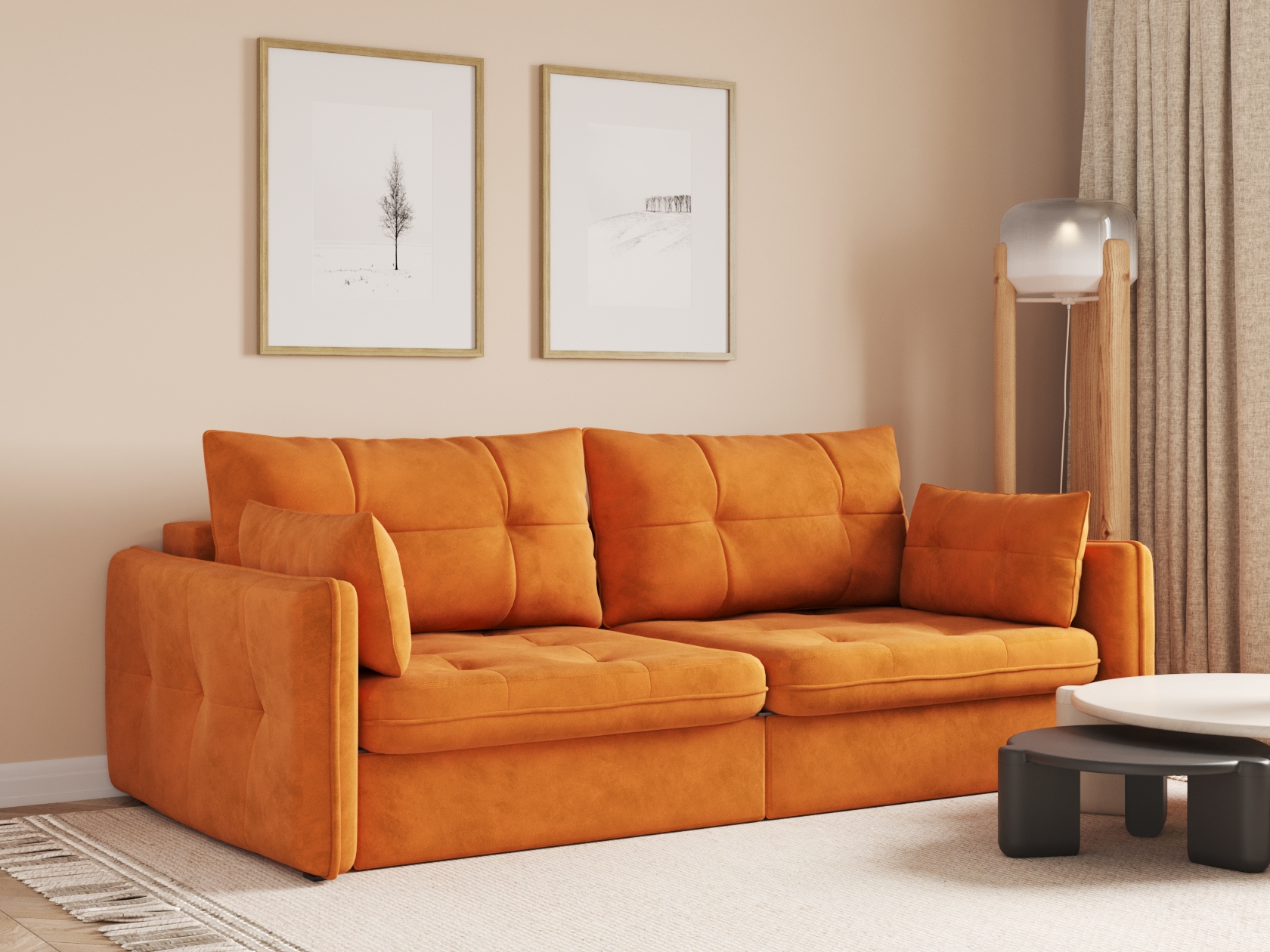 Прямой диван Патрис гармонично дополнит любой интерьер и станет отличным решением для комфортного отдыха. Плавные изгибы подчеркнуты декоративным кантом. Подушки, украшенные каретной стяжкой, помогут регулировать глубину сиденья и занять наиболее удобное положение. Гладкий шелковистый материал обивки приятен на ощупь и обладает эффектом дорогой матовой фактуры. Модель безупречно выглядит со всех сторон и подойдет для зонирования комнаты. При помощи механизма трансформации диван легко превращается в ровное спальное место, по удобству сравнимое с полноценной кроватью. Вместительный короб позволит хранить необходимые постельные принадлежности.