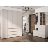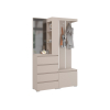 Прихожая Элли — стильный и практичный модуль, в котором продумана каждая деталь. Рядом с зеркалом расположены полочки для косметики, парфюма и аксессуаров, а в ящиках есть место для шарфов, перчаток и ключей. Панель с крючками для верхней одежды дополнена обувницей. Плавный ход ящиков делает прихожую еще удобнее.