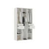Распашной шкаф Нельсон 2 — лаконичная модель с продуманным наполнением. Несколько разных по высоте ниш позволят аккуратно развесить одежду любой длины, а ящики по центру — хранить небольшие предметы повседневного гардероба. Оформление фасадов достаточно лаконичное, поэтому шкаф удачно сочетается с большинством современных интерьеров.