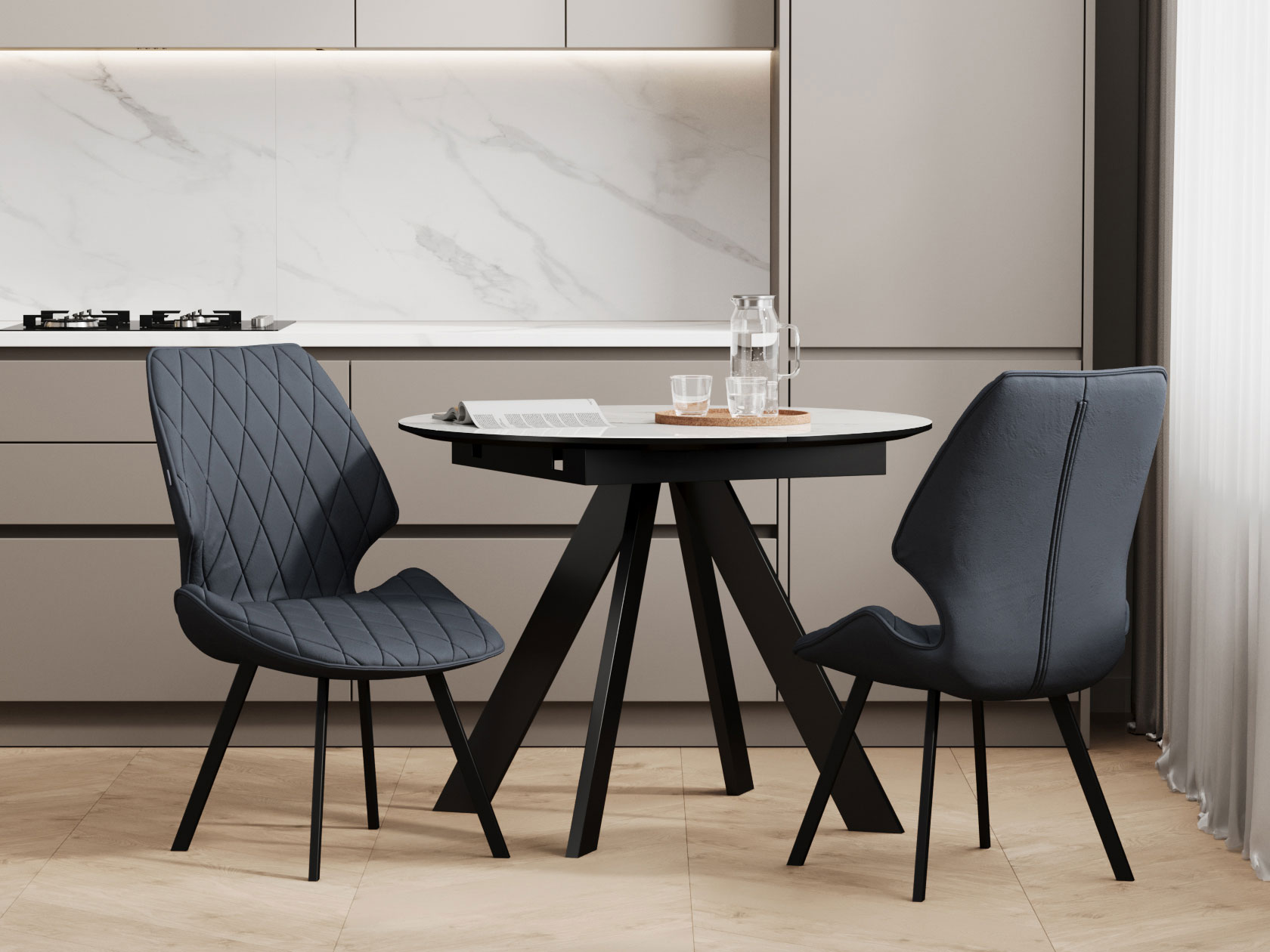 Кухонный стол Курт — компактная модель в современном стиле, которая прекрасно дополнит интерьер небольшого помещения. Декор под мрамор смотрится очень стильно и актуально, а массивные опоры обеспечивают устойчивость конструкции. Площадь столешницы легко увеличить благодаря надежному механизму трансформации.