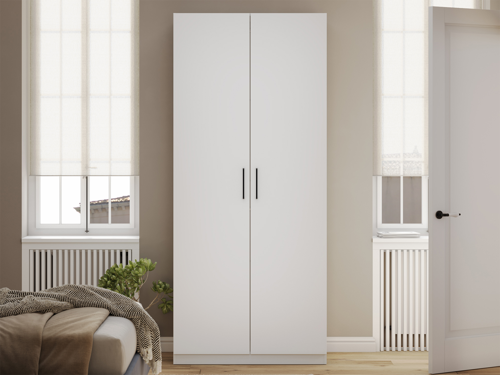 Распашной шкаф Сиена — идеальное дополнение минималистичного интерьера. Гладкие фасады с лаконичной фурнитурой подчеркивают сдержанный облик мебели. На вешалках удобно хранить верхнюю или повседневную одежду из деликатных тканей.