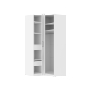 Распашной шкаф Сиена объединяет две вместительные секции для хранения. Несколько полок, ниша со штангой и пара выдвижных ящиков помогут удобно разместить любые предметы гардероба. Минималистичные фасады дополнены стильными контрастными ручками.