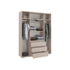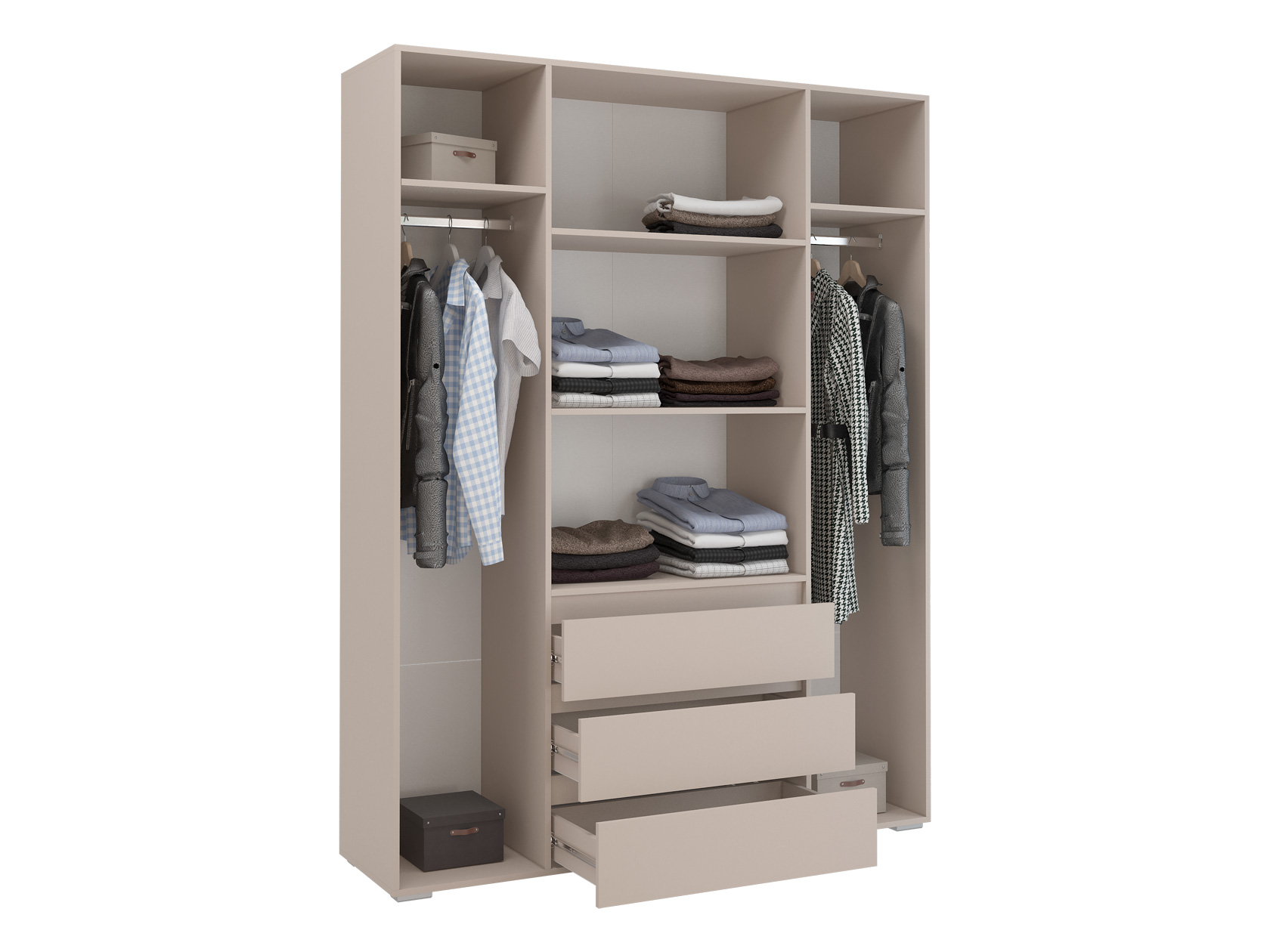 Распашной шкаф Элли — простой способ разместить гардероб, сэкономив пространство комнаты. Благодаря небольшой глубине модель помещается даже в узком проходе, а продуманное наполнение помогает организовать удобное хранение повседневной одежды. Ящики и дверцы открываются за выступающий край фасада.
