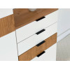 В оформлении комода Адам используются древесный декор и стильная фрезеровка. Такой дизайн смотрится очень эффектно и одновременно уютно. Благодаря комбинированному наполнению в комоде можно удобно разместить множество нужных вещей. Небольшая глубина позволяет установить модель даже в узком пространстве.