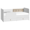 Детская кровать Джастин — уютное место для сна, в котором продумана каждая деталь. Скругленные углы снижают риск случайных травм, а бортик защищает от падения. Кровать дополнена парой выдвижных ящиков, где можно хранить под рукой теплый плед, любимые игрушки и другие важные для ребенка вещи.