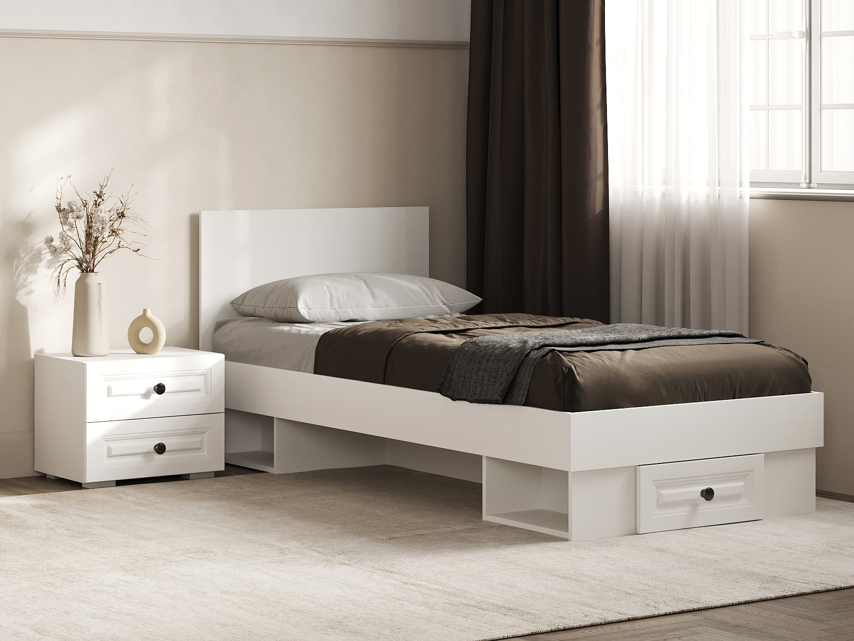 Белый. 90х200 см. С дополнительным ящиком