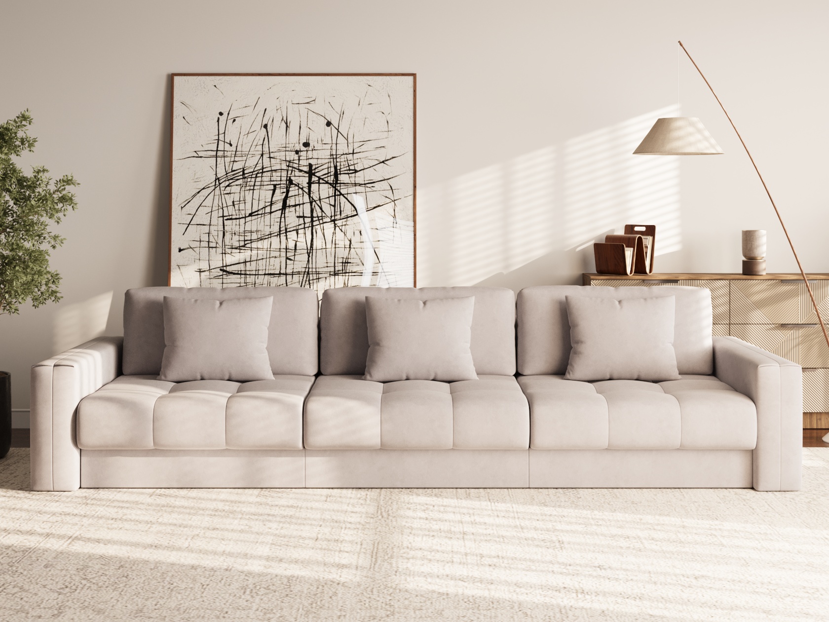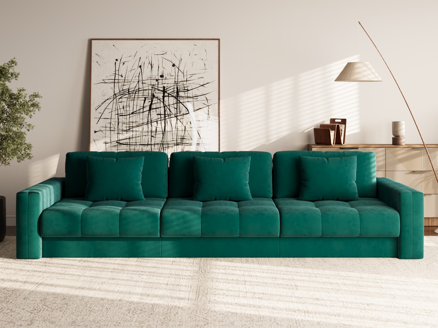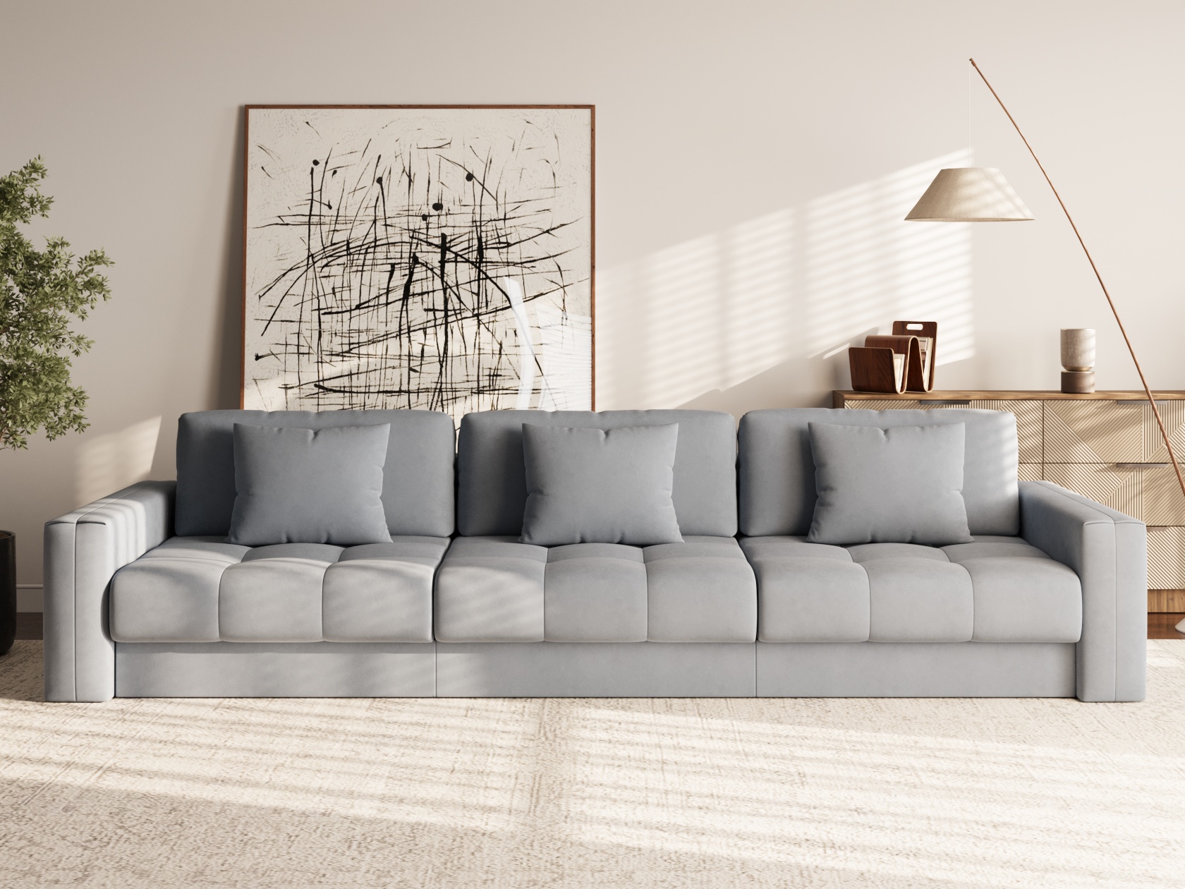 Прямой диван Клермон Макси — основательная модель для комфортабельного отдыха. В просторной гостиной диван можно использовать для зонирования пространства, установив в любой точке комнаты. Приспинные и декоративные подушки позволяют устроиться максимально удобно, независимо от роста и комплекции сидящего.