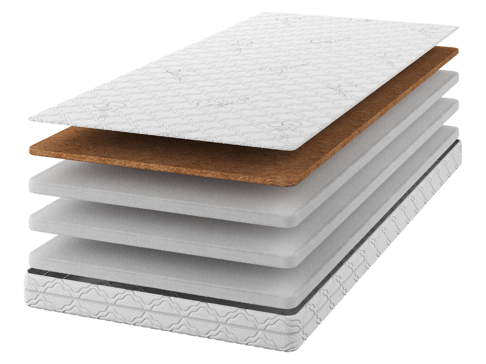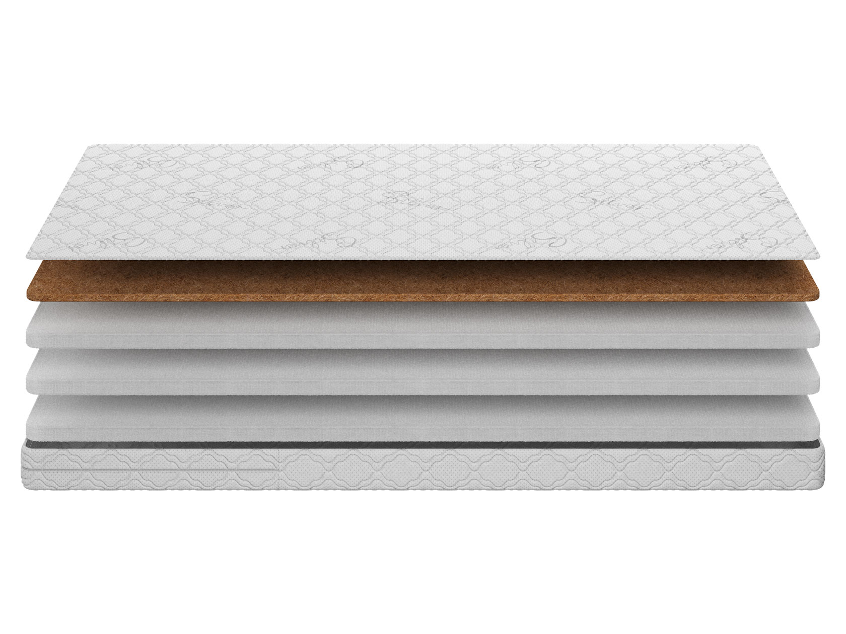 Детский матрас Струтто с кокосом — двусторонняя модель со съемным стеганым чехлом. Слой кокоса обеспечивает необходимую для формирования осанки жесткость, а упругие волокна с другой стороны матраса легко адаптируются под контуры тела, обеспечивая комфорт.