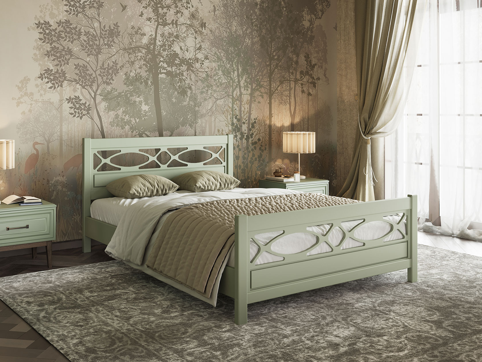 Двуспальная кровать Латина смотрится легко и невесомо, поэтому подходит для меблировки как просторной, так и небольшой комнаты. Узоры в изголовье и изножье делают модель украшением любого интерьера. Основание с ламелями усиливает анатомические свойства матраса, а высокие ножки облегчают уборку пола. Кровать выполнена из прочных и экологичных материалов.