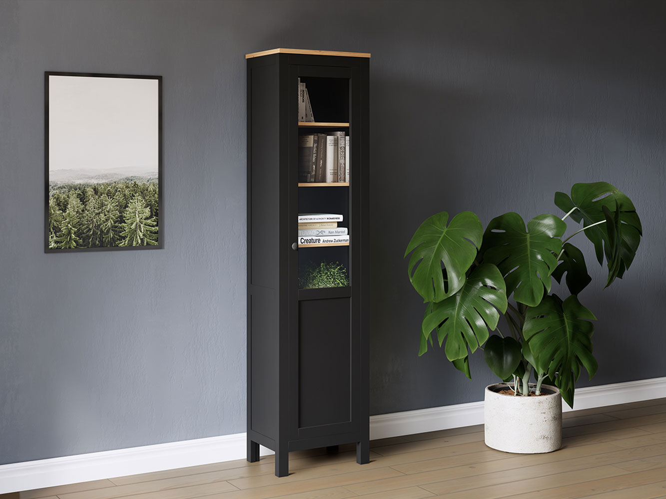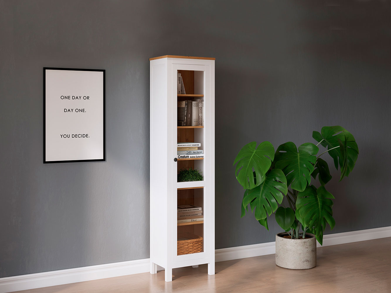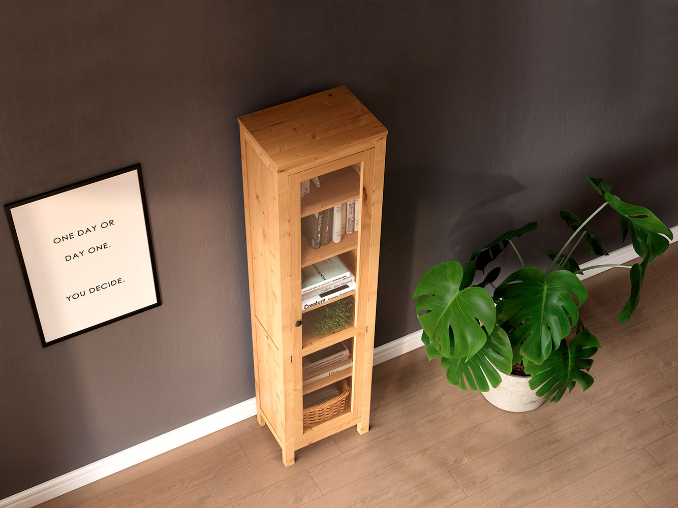 Шкаф-витрина Кымор — модель, которая украсит интерьер любой комнаты. Мебель из массива дерева обладает особой прочностью, поэтому полки выдерживают большую нагрузку. Высокие ножки и прозрачное стекло придают модели визуальную легкость.