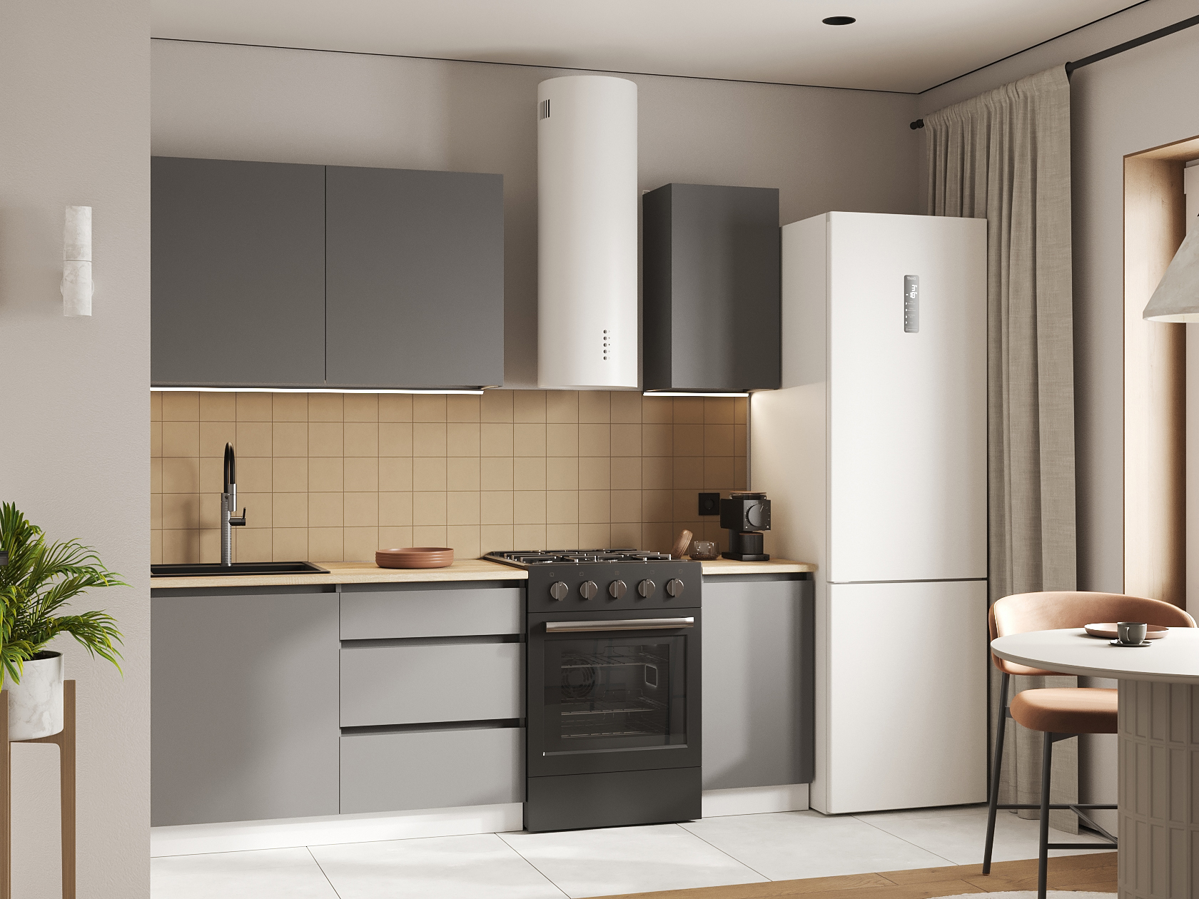 Обратите внимание, стеновая панель, плинтус, мойка и сушилка для посуды в комплект не входят.