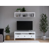 Гостиная Кымор поможет оформить компактную ТВ-зону. Мебель выполнена из массива, поэтому прослужит долго и порадует приятной текстурой натурального дерева. В ящиках и на полках найдется место для мультимедиа-техники, аксессуаров, книг и декора.