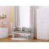 Кроватка-трансформер для новорожденных Ронни легко адаптируется для разных этапов жизни малыша. Сначала ее можно использовать как колыбель, пеленальный столик или приставную модель. Когда ребенок станет старше, кроватка заменит манеж, игровую мебель или небольшой диванчик. Отсутствие острых углов и колеса со стопорами — дополнительные преимущества модели.