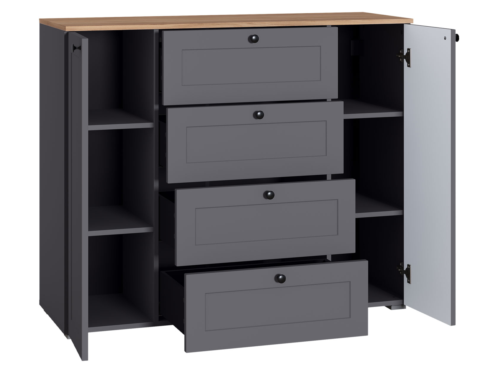 Набор комодов Остин гармонично впишется в любой интерьер, не перегрузив пространство комнаты. Шкафы-витрины помогут расположить на виду предметы декора или посуду, а вместительный комод подойдет для хранения одежды, белья и других вещей.