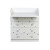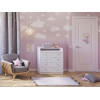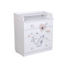 Детский комод Фея 4 станет незаменимым помощником в уходе за малышом с первых дней его жизни. Очаровательный рисунок на фасаде украсит интерьер спальни или детской комнаты. В выдвижных ящиках удобно хранить одежду, подгузники, влажные салфетки и различные аксессуары. Доска для пеленания легко раскладывается для пеленания, а в сложенном виде экономит пространство.