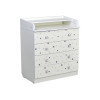 Детский комод Фея 4 станет незаменимым помощником в уходе за малышом с первых дней его жизни. Очаровательный рисунок на фасаде украсит интерьер спальни или детской комнаты. В выдвижных ящиках удобно хранить одежду, подгузники, влажные салфетки и различные аксессуары. Доска для пеленания легко раскладывается для пеленания, а в сложенном виде экономит пространство.