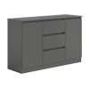 Комод Охта Лайт имеет стильный монолитный облик и отлично подойдет для меблировки современного интерьера. Комбинированное наполнение представлено отделениями с полками за распашными дверцами и ящиками, которые обладают плавным бесшумным ходом и выдвигаются на всю глубину, обеспечивая удобный доступ к содержимому.