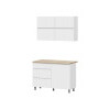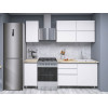 Кухонный гарнитур Киото — готовое решение для создания светлого и визуально легкого интерьера. Дверцы ящиков и шкафов не имеют лицевой фурнитуры и открываются захватом рукой за тыльный край фасада, что смотрится современно и упрощает уход за поверхностью. Столешница в оттенке натурального дерева делает гарнитур уютнее, а регулируемые опоры помогают справиться с небольшими неровностями пола.