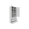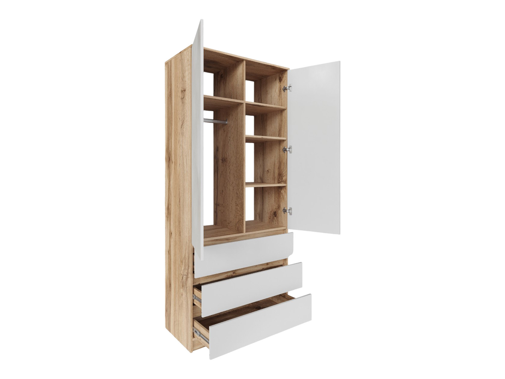 Распашной шкаф Охта Лайт станет отличным решением для хранения необходимых предметов гардероба и гармонично дополнит современный интерьер. Комбинированное наполнение предусматривает отделение с продольной штангой для вешалок, ряд полок для сложенной одежды и вместительные ящики, которые плавно и бесшумно выдвигаются на всю глубину, обеспечивая удобный доступ к содержимому.