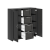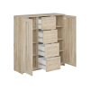 Комод Сириус станет отличным дополнением гостиной, спальни или прихожей. Полки за распашными дверцами и выдвижные ящики позволяют хранить одежду, белье, аксессуары и другие необходимые вещи. Надежная фурнитура обеспечивает удобство эксплуатации.