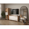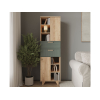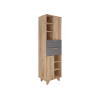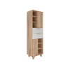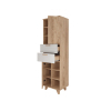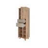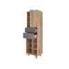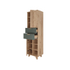 Стеллаж Ньерд — элегантное и функциональное решение для хранения. Конструкция сочетает выдвижные ящики, открытые ниши и удобные полки, что позволяет упорядочить всё необходимое. Деревянные элементы добавляют интерьеру теплоту и природную гармонию. Чередование вертикальных и горизонтальных линий фрезеровки создает необычный акцент.
