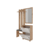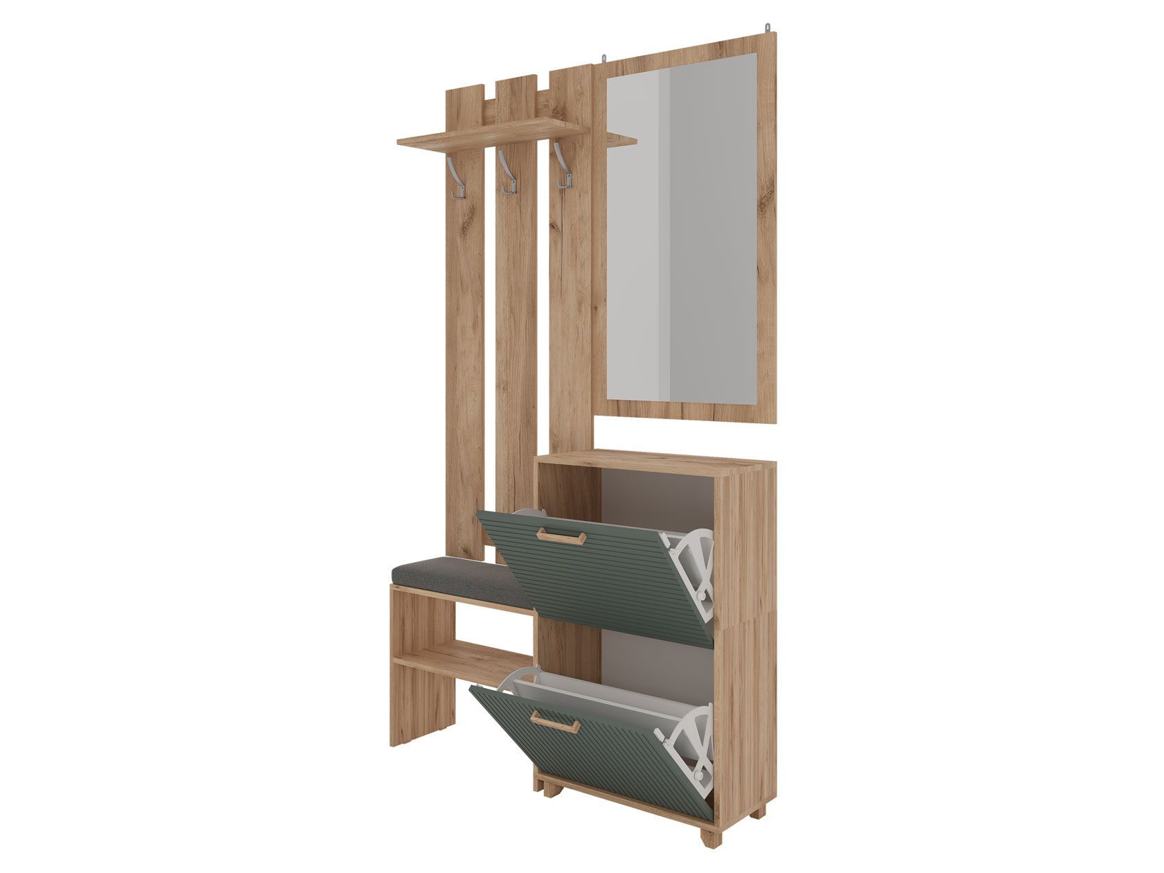 Прихожая Ньерд сочетает все необходимые элементы для удобства входной зоны. На вешалке можно разместить верхнюю одежду, сумки и зонты. Обувница с откидным механизмом обеспечивает быстрый доступ к содержимому. Зеркало позволяет оценить внешний вид перед выходом из дома. Лаконичная банкетка выступит в роли сиденья для переобувания.
