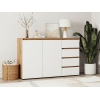Основательный и удобный комод Хелен поможет разместить большое количество вещей: от одежды и обуви до разных мелочей и аксессуаров. Благодаря светлым фасадам без лицевой фурнитуры модель не перегружает интерьер. Дверцы и ящики закрываются плавно и без резких звуков, что делает комод еще комфортнее.