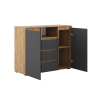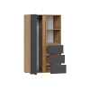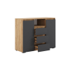 Гостиная Хелен — сочетание функциональности и актуального дизайна. Практичные элементы для хранения подчеркнуто лаконичны, поэтому способствуют гармоничной и спокойной атмосфере комнаты. Древесный оттенок корпусов в сочетании с однотонными фасадами создает уютный акцент в любом интерьере.