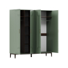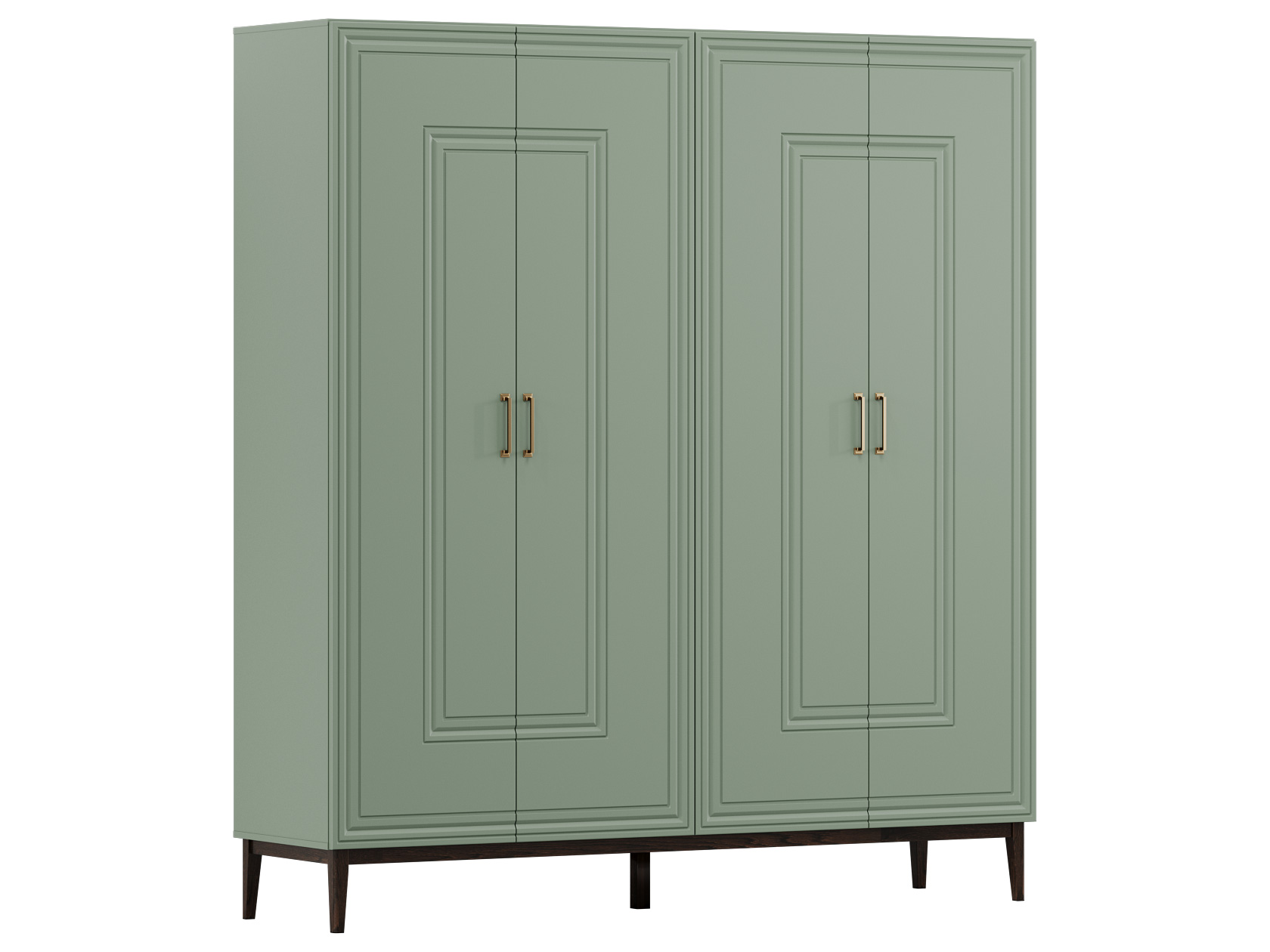 Распашной шкаф Эвора — вместительное решение для хранения предметов гардероба, белья и других принадлежностей. Два отделения со штангами для вешалок позволяют разделить верхнюю и повседневную одежду. Фасады украшены фрезеровкой и стильными ручками, которые придают модели особый шарм.