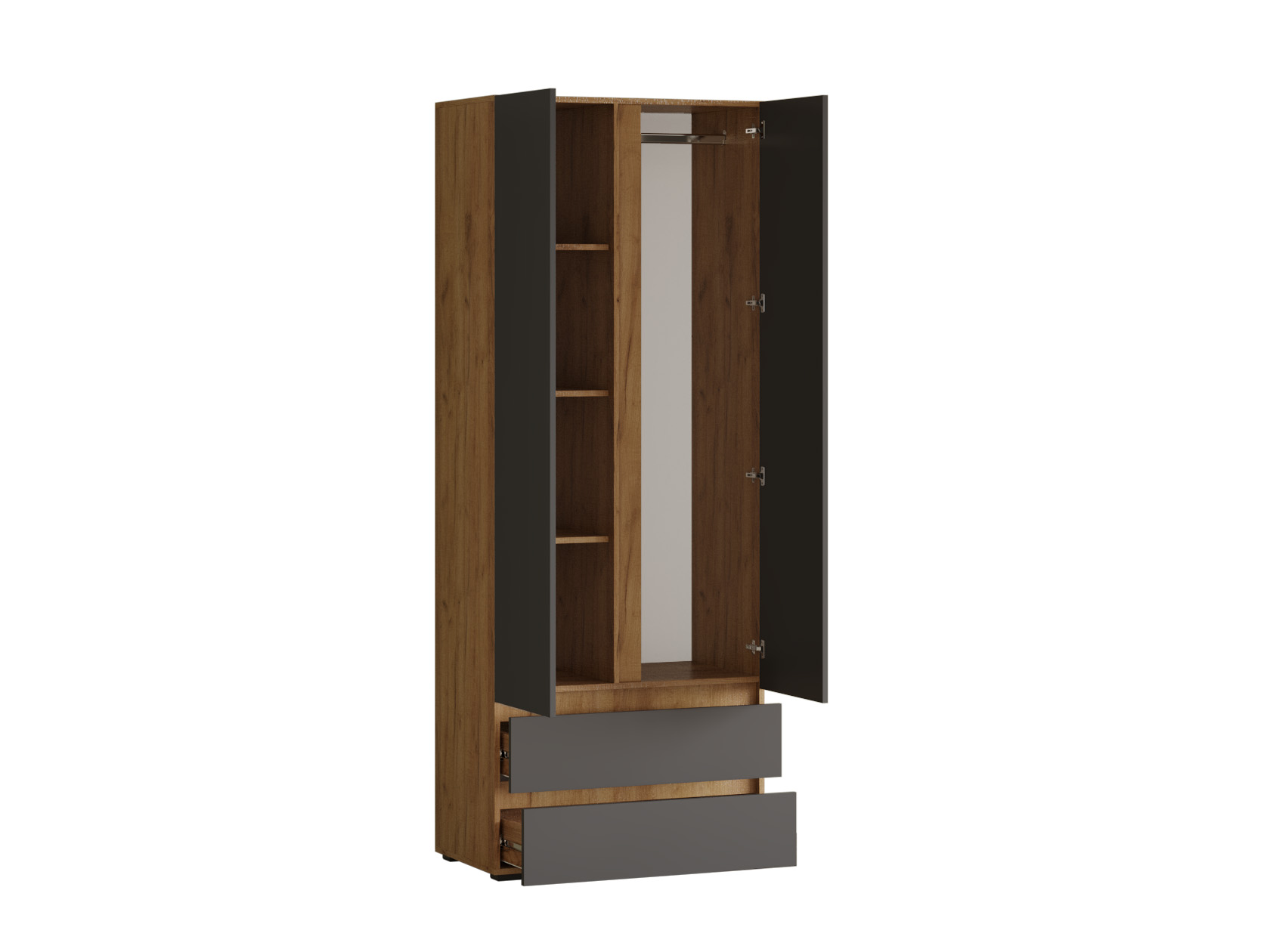 Спальный гарнитур Хелен — элегантное и функциональное решение для меблировки, которое сочетает практичность и комфорт. В наборе есть всё необходимое для создания уютной обстановки. Минималистичный дизайн фасадов без лицевой фурнитуры и декоративных элементов отлично сочетается с современными интерьерами.