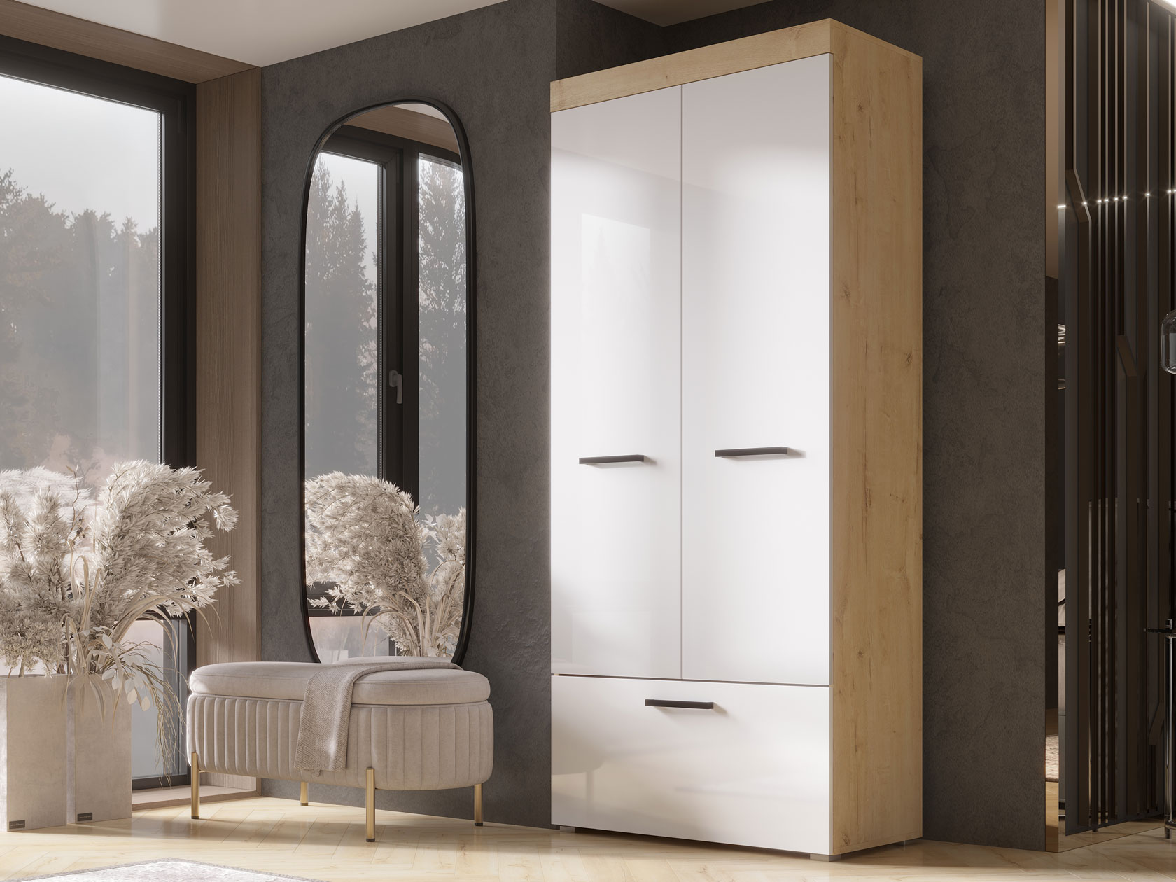 Распашной шкаф Бастон станет элегантным дополнением гостиной, спальни или прихожей. Современный дизайн позволяет адаптировать модель под любой интерьер. Евроштанга разместит одежду из деликатных тканей, а на полках удобно хранить вещи в сложенном виде.