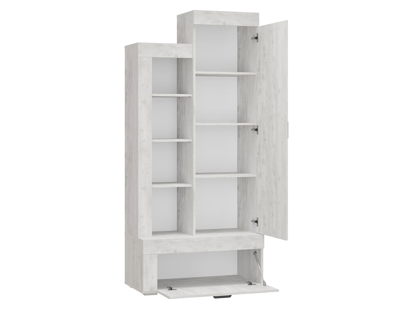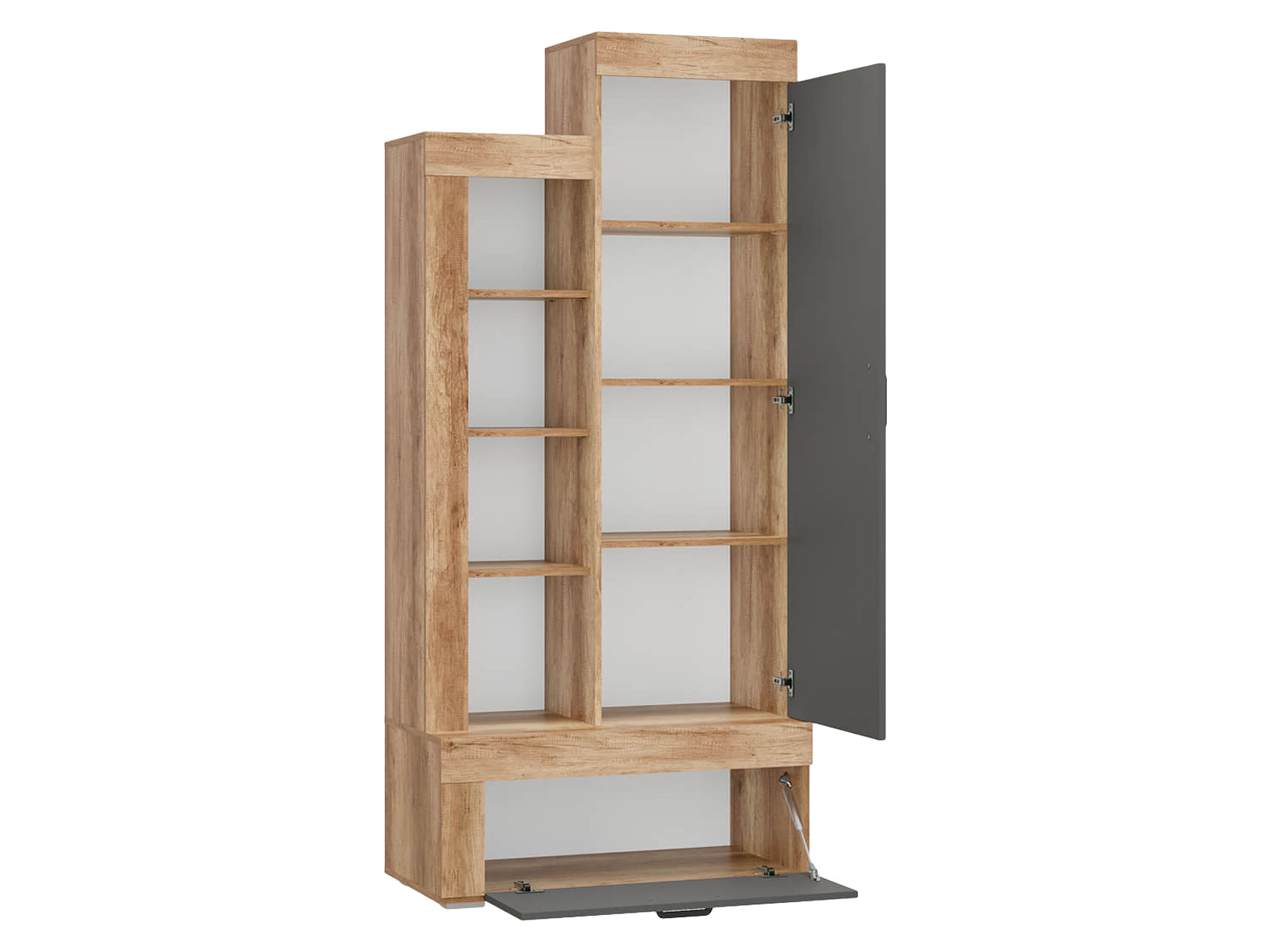 Стеллаж Прима станет элегантным дополнением гостиной, спальни или прихожей. Откидная секция, открытые ниши и полки за распашной дверцей позволяют удобно хранить различные вещи. Современный дизайн легко адаптируется под любой интерьер.