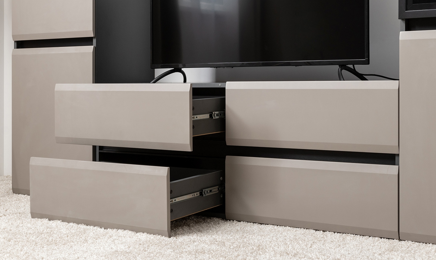 Гостиная Сидней — практичное решение для стильной меблировки комнаты. Оригинальный дизайн и продуманное наполнение элементов позволят функционально обустроить пространство. Дверцы и ящики открываются и закрываются плавно и почти бесшумно.