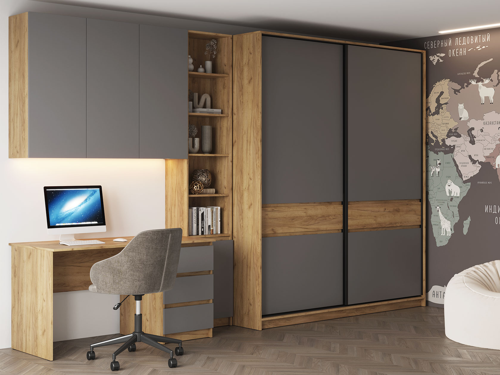 Дуб Крафт золотой / Серый шифер