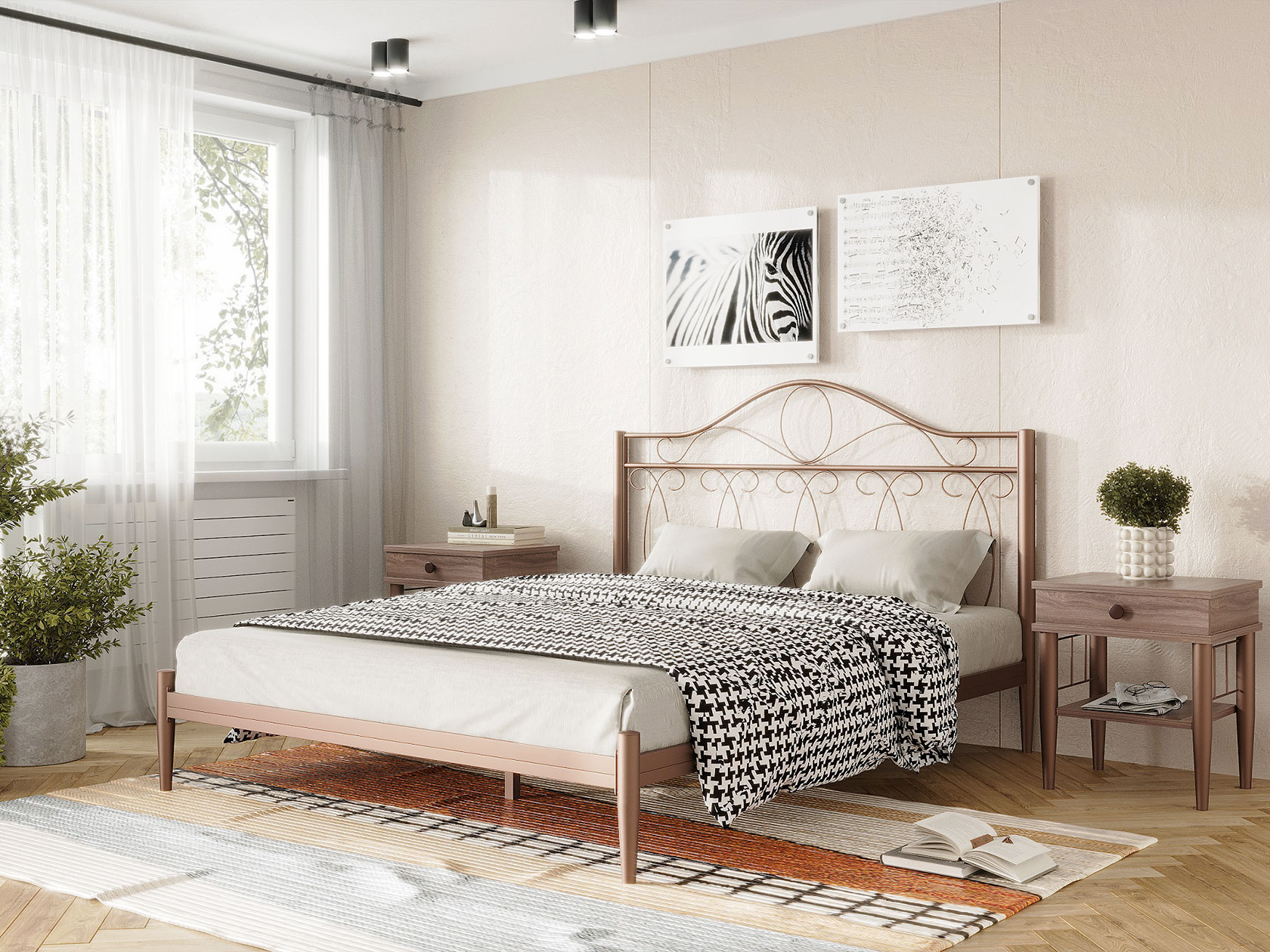 Кремово-белый, металл. 160х200 см