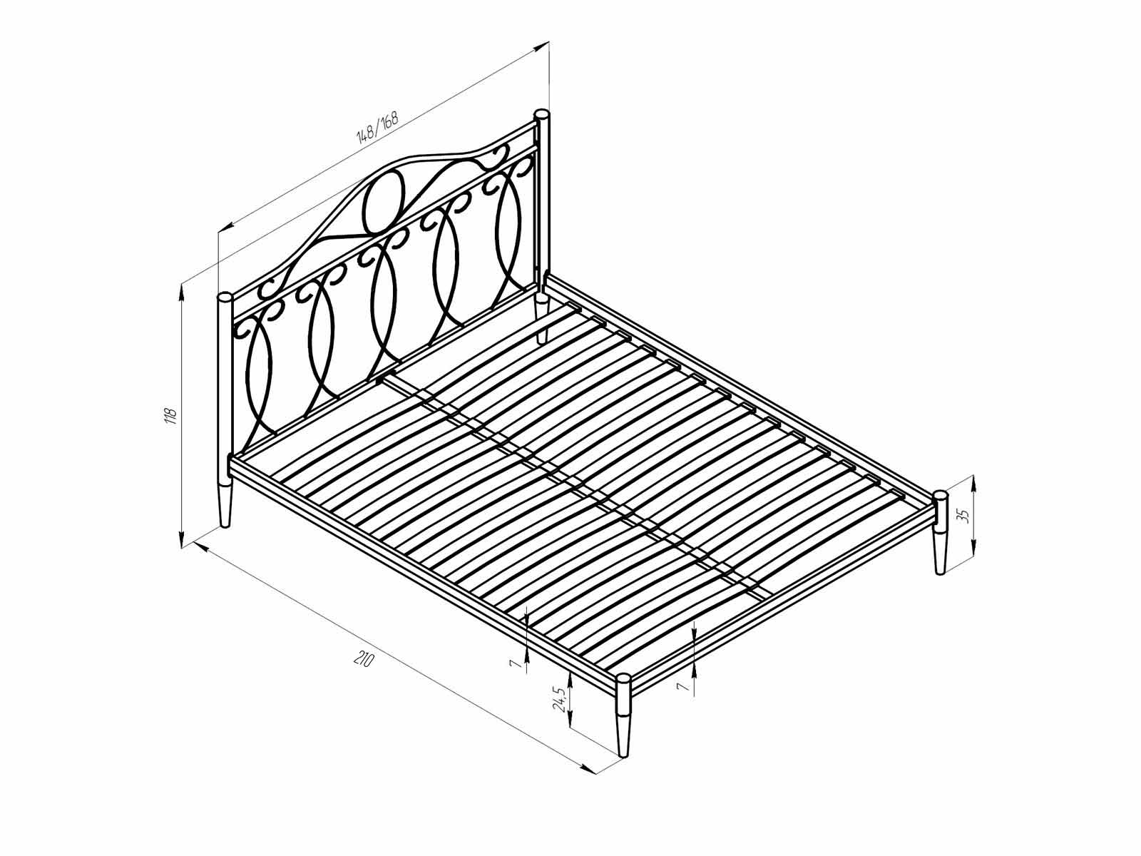 Высота ниши под матрас: 3 см.