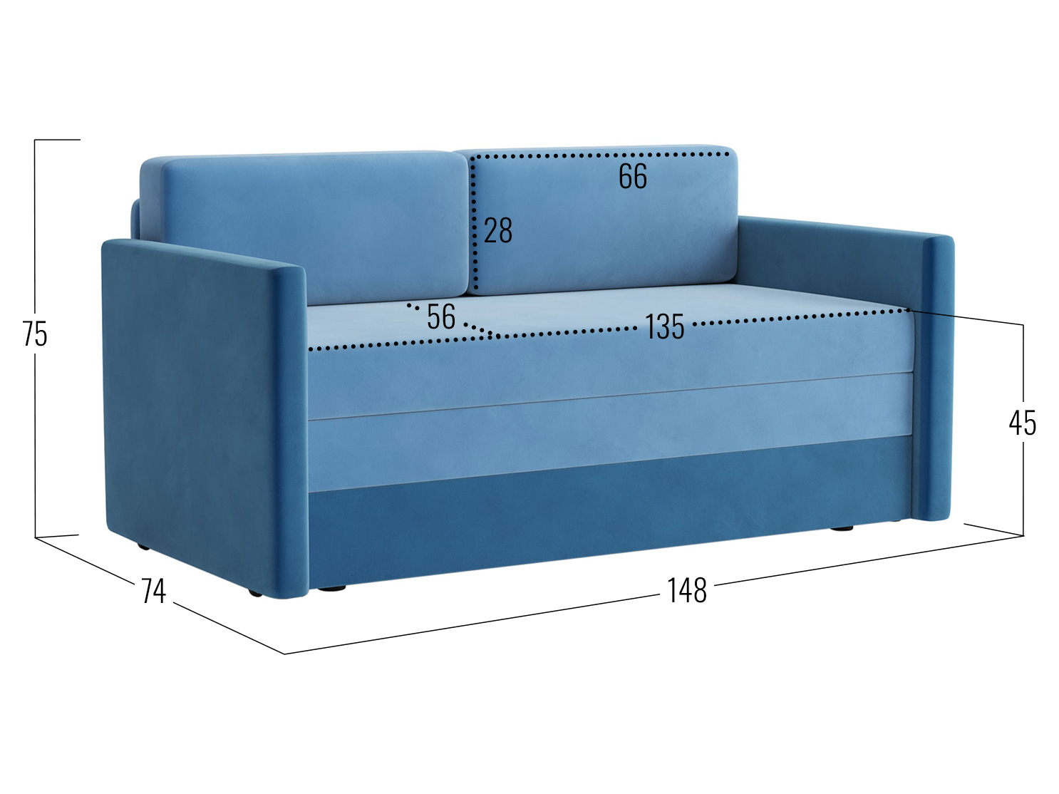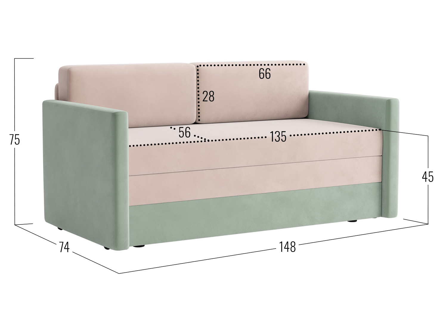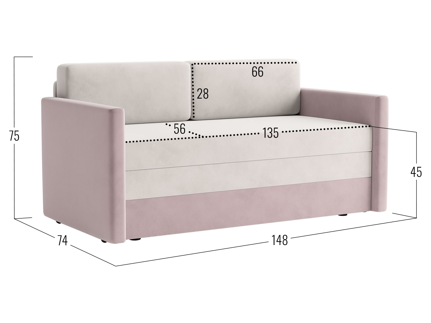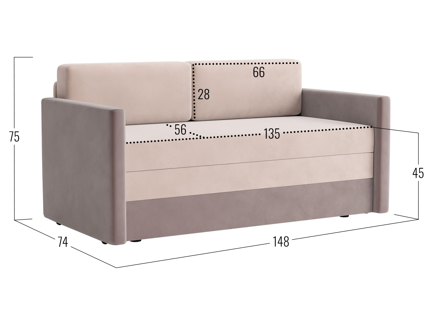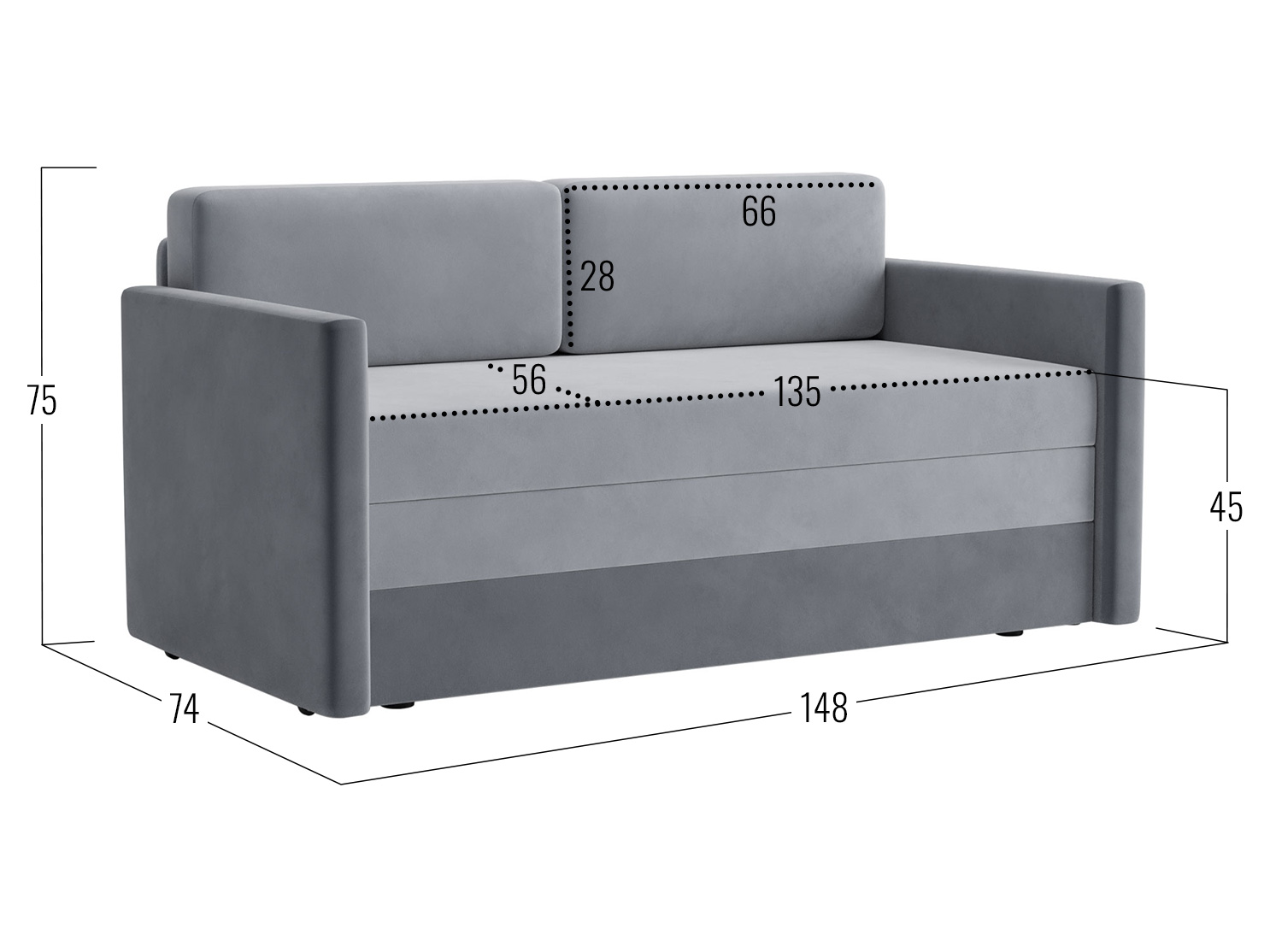 Посадочное место без подушек (ШхГ): 135 х 71 см.