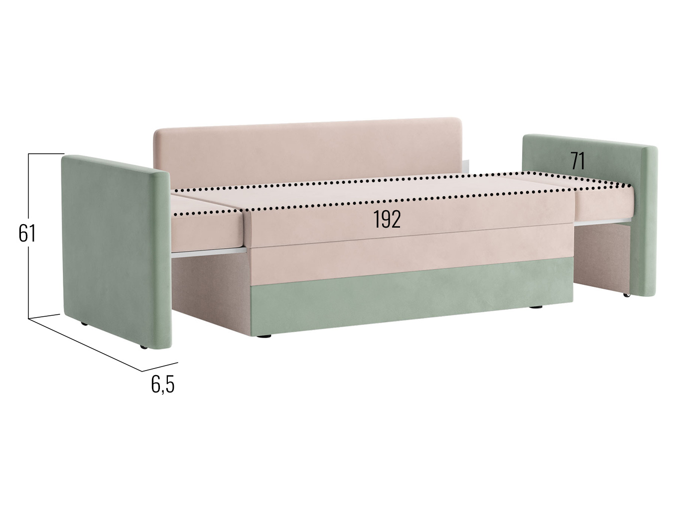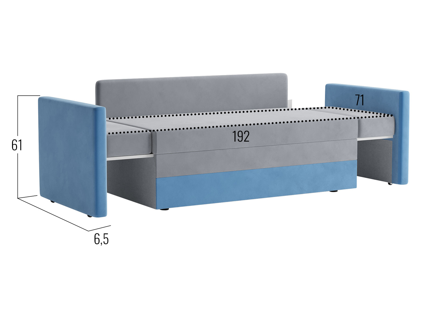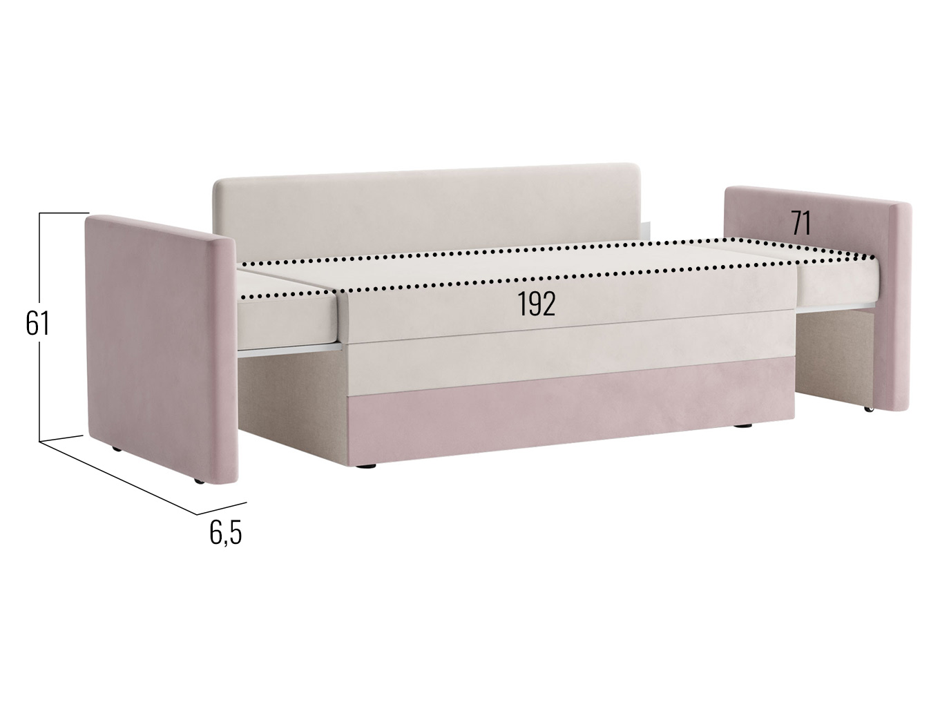Размер спального места с раздвинутыми боковинами (ШхГ): 71 х 192 см.