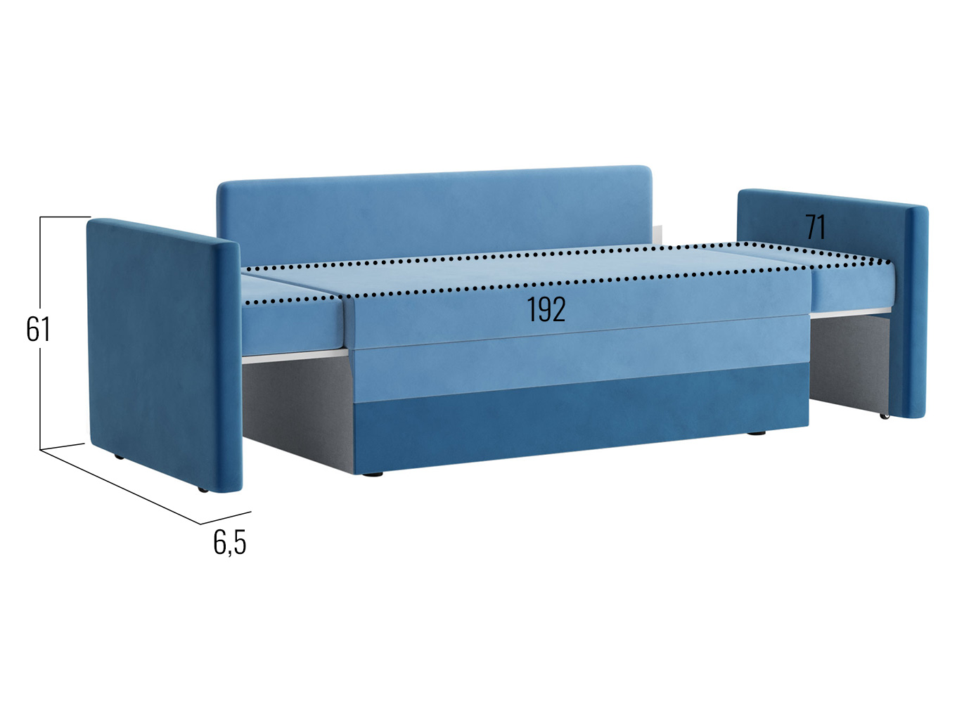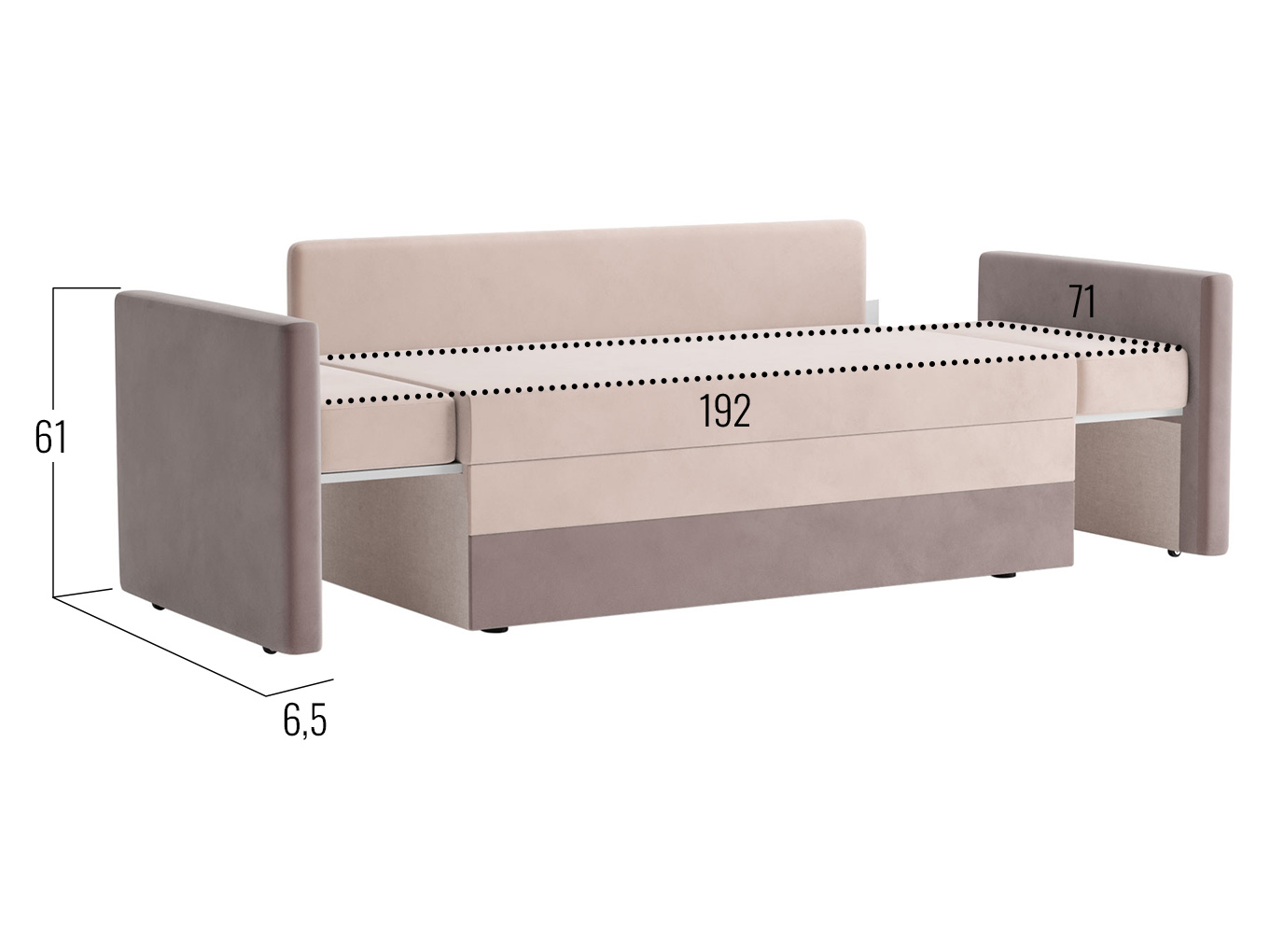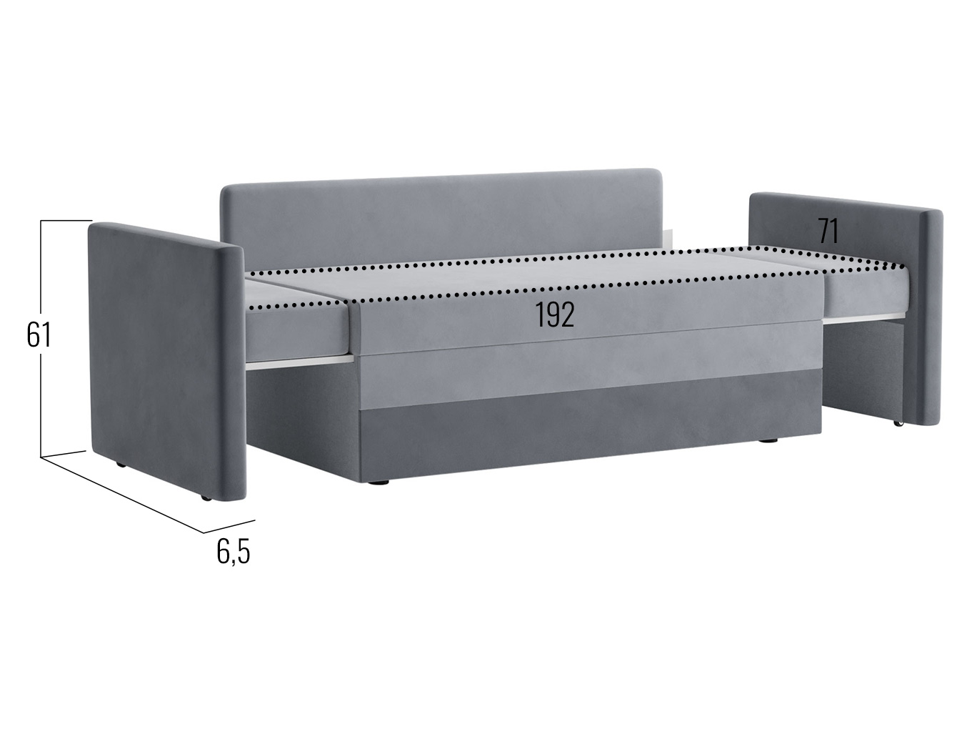 Размер спального места с раздвинутыми боковинами (ШхГ): 71 х 192 см.