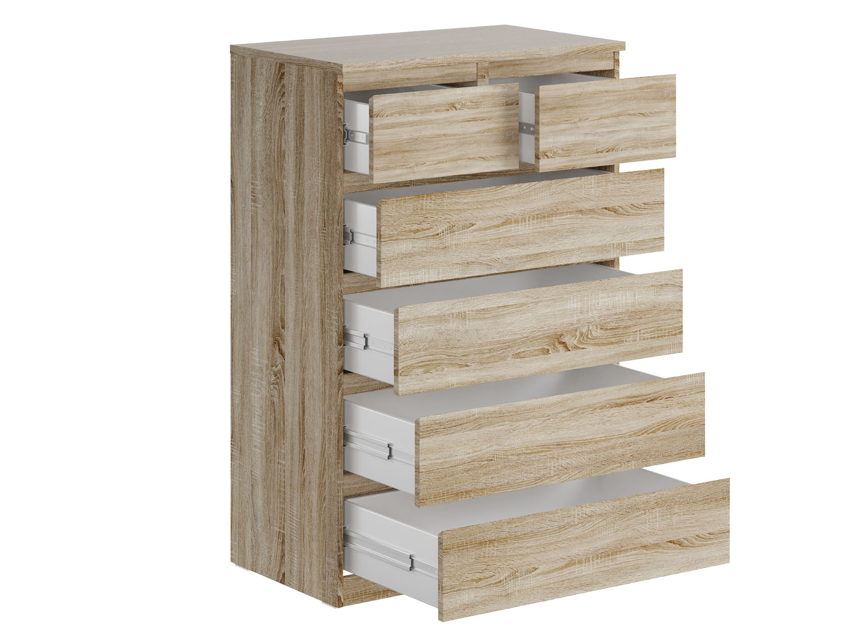 Комод Мальта — функциональное решение для хранения вещей. Высокая конструкция позволяет интегрировать модель даже в небольшое пространство. Сочетание разногабаритных выдвижных ящиков идеально подходит для одежды, белья, книг и аксессуаров. Лаконичный дизайн адаптируется под современные интерьерные стили.