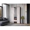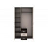 Распашной шкаф Белла — практичное украшение современной спальни, гостиной или квартиры-студии. Внутри шкафа есть вместительная секция со штангой для вешалок. В правой части поместятся даже длинные платья и зимняя одежда. Для хранения мелких вещей и текстиля шкаф дополнен тремя выдвижными ящиками. А постельное белье и одежду удобно хранить в секции-пенале с глубокими нишами.