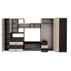 Обратите внимание, что центральная часть стенки с нишей и комодом собирается только так, как на изображении — комод слева. Остальные шкафы вы можете расположить по своему усмотрению. Боковины ящиков закромлены только с одной стороны, сборку необходимо осуществлять строго по инструкции. С инструкциями по сборке можно ознакомиться на страницах отдельных моделей.