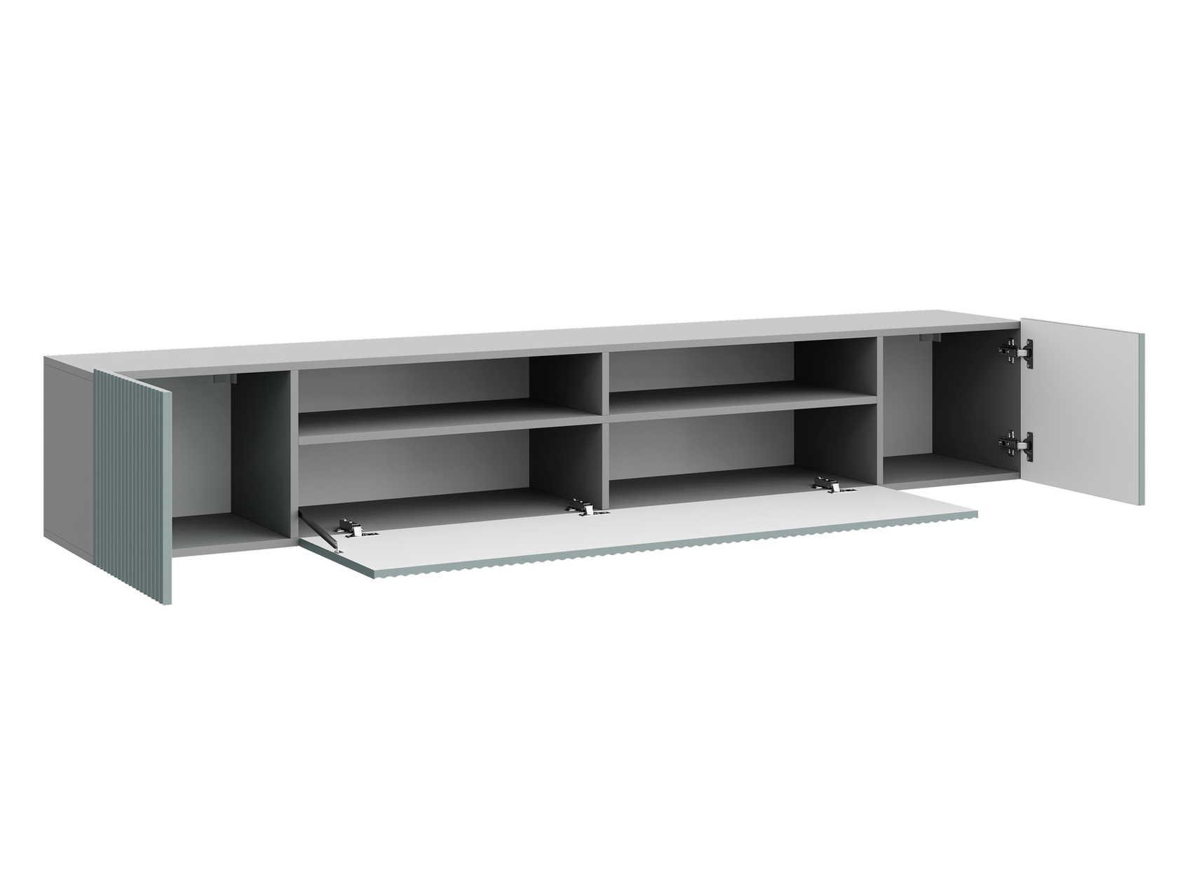 ТВ-тумба Сканди позволит расположить телевизор любой диагонали, мультимедийную технику и найти место для различных предметов обихода. Вертикальный декор на фасадах создает акцентный элемент интерьера. Дверцы открываются за специальные выступы, что заменяет лицевую фурнитуру.