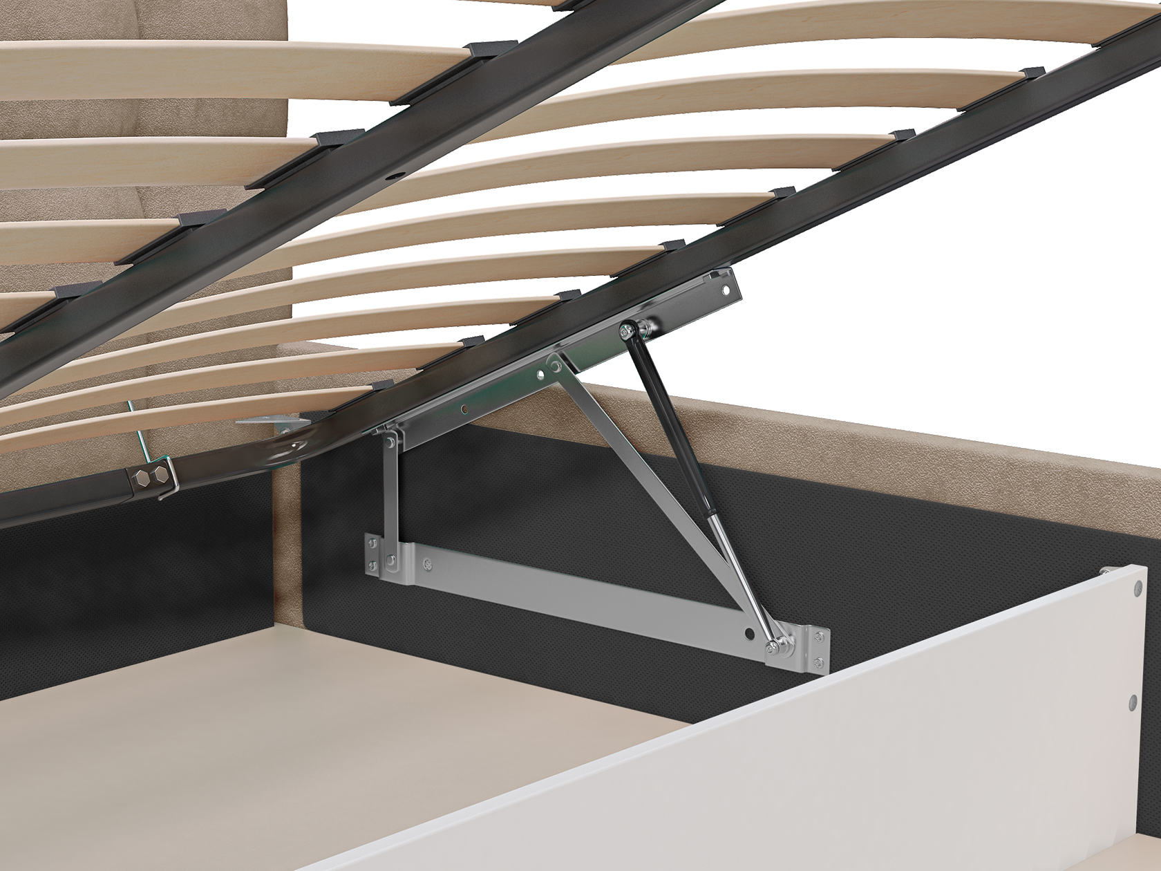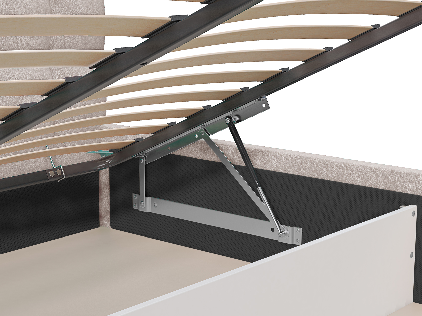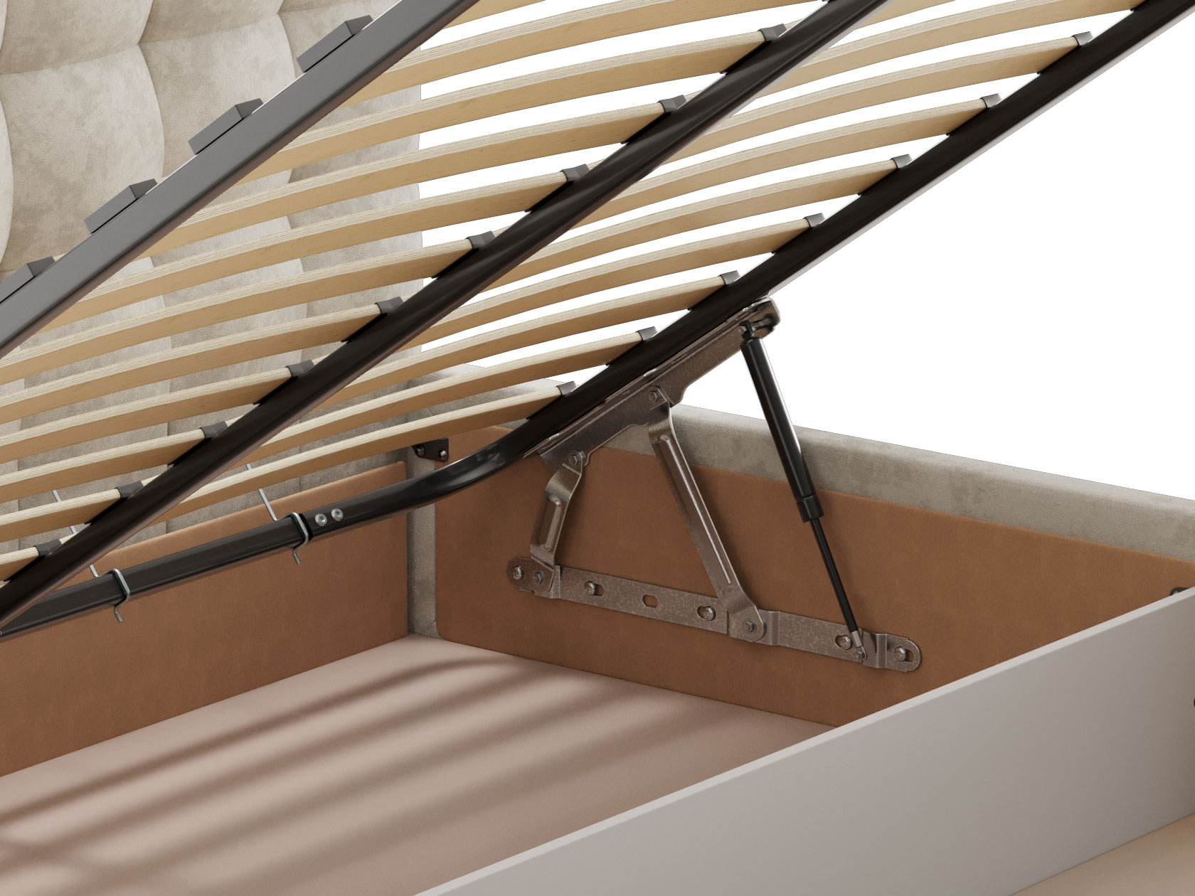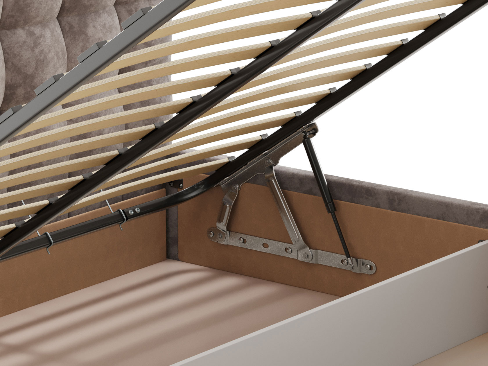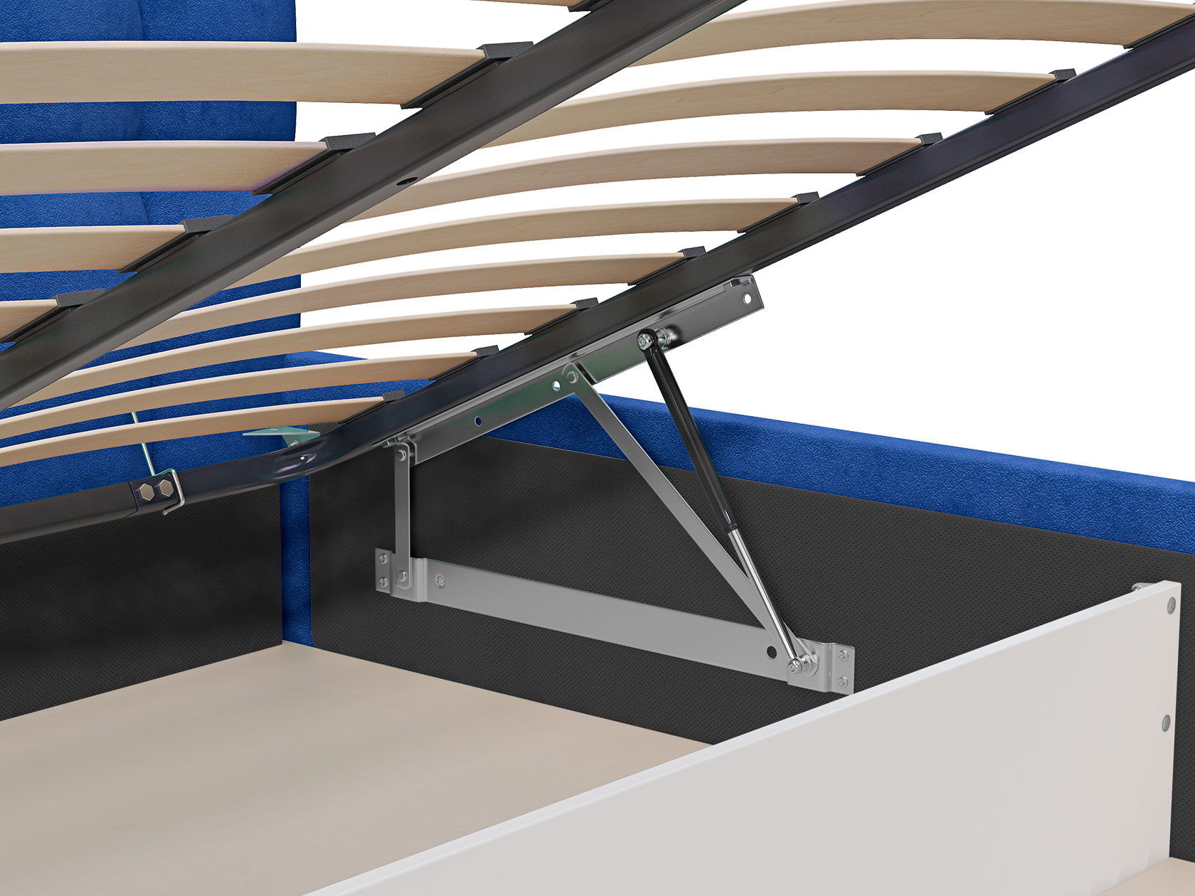 Кровать с подъемным механизмом Верона ПМ создаст уютное место для отдыха и сна. Вместительный ящик в основании — дополнительная ниша для хранения постельных принадлежностей и сезонных вещей. Высокое изголовье с симметричной стяжкой украшает интерьер и позволяет комфортно расположиться сидя. Модель комплектуется металлической рамой с гибкими ламелями, а значит, выдерживает большие нагрузки и обеспечивает оптимальную основу для матраса.