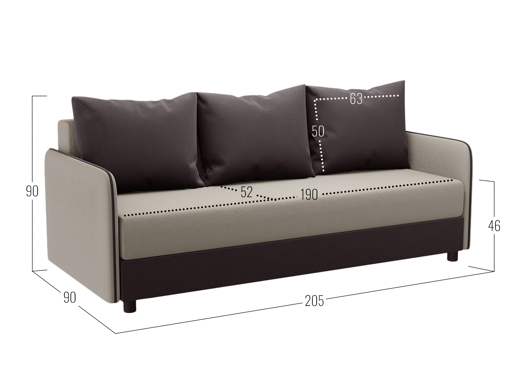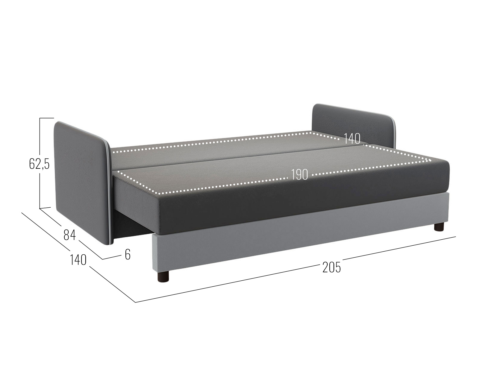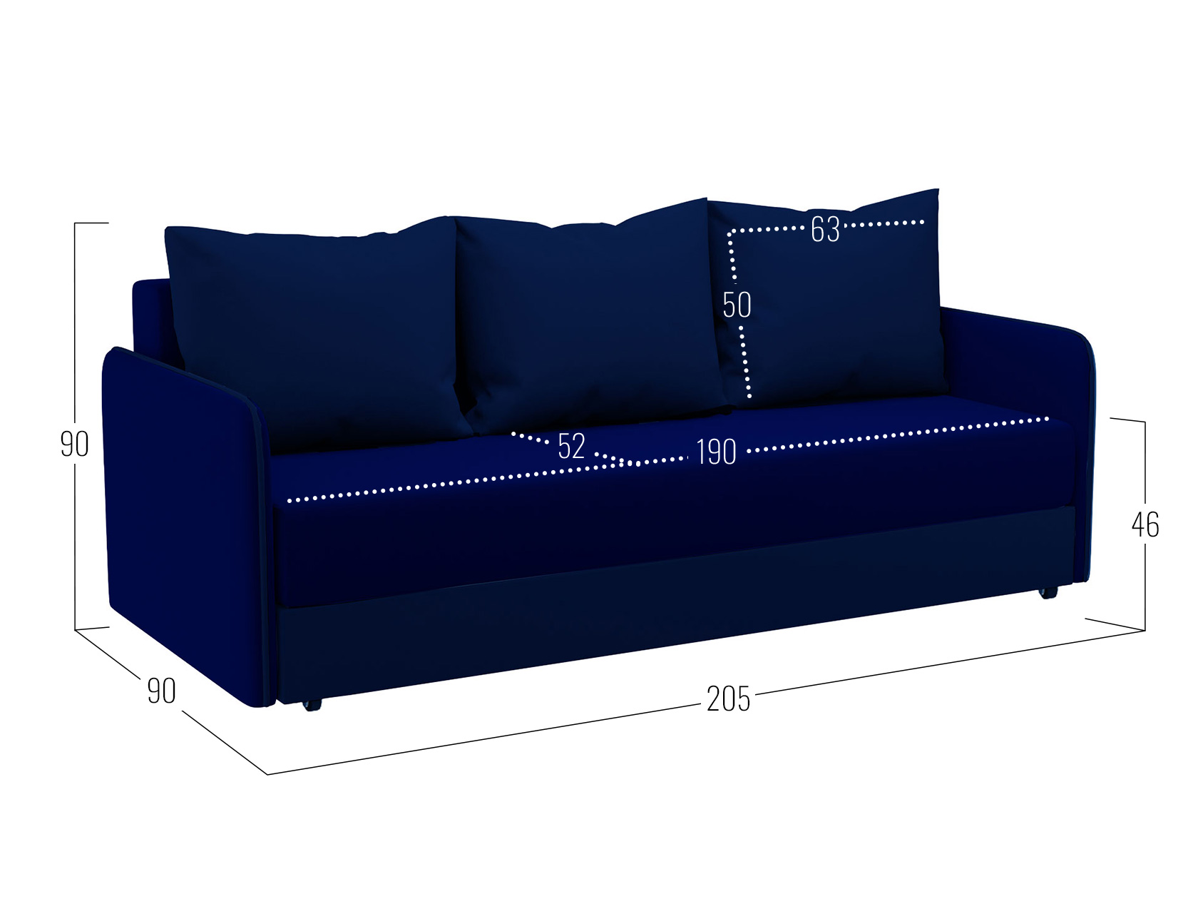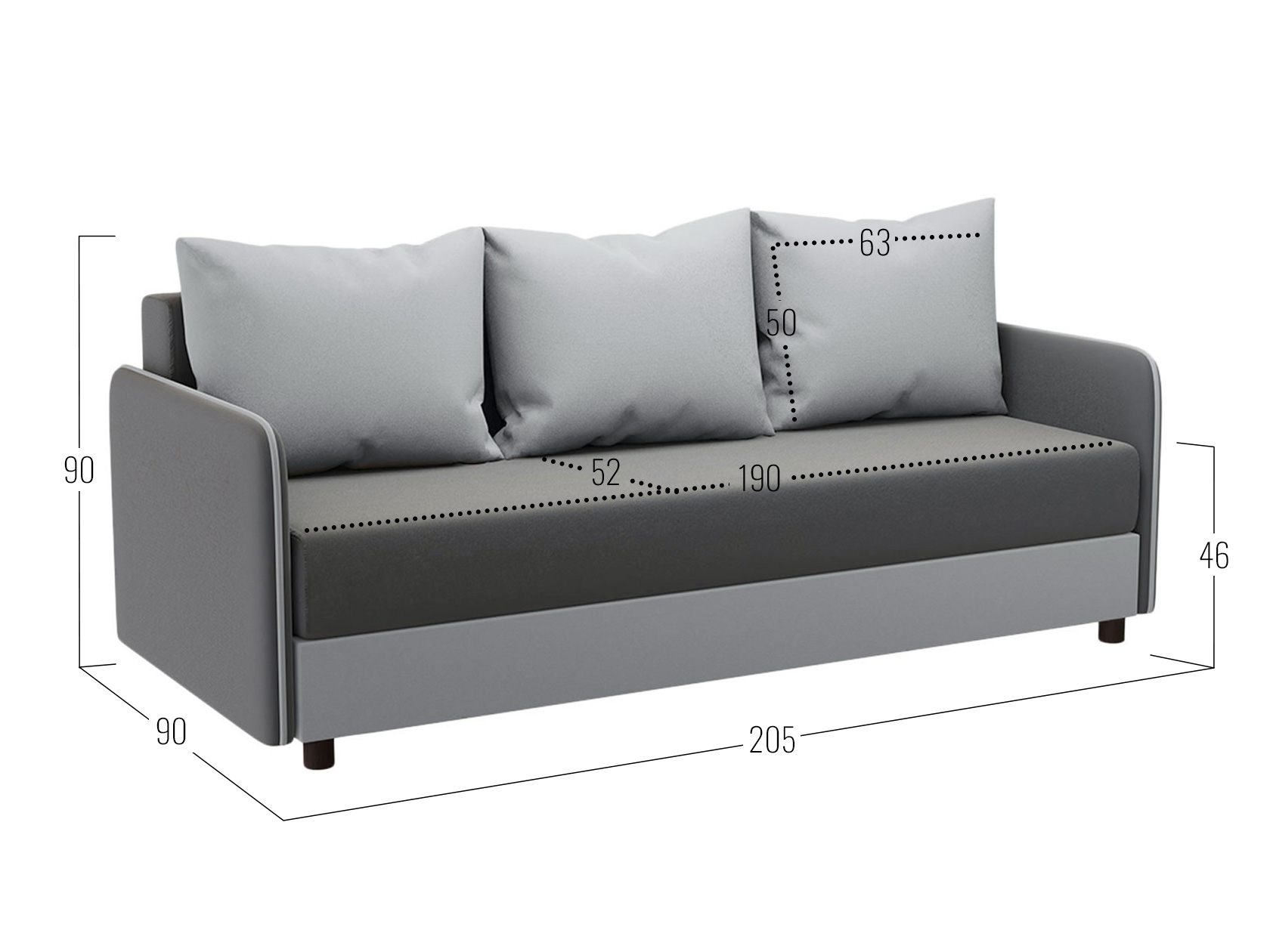 Посадочное место без подушек (ШхГ): 190 х 73 см.