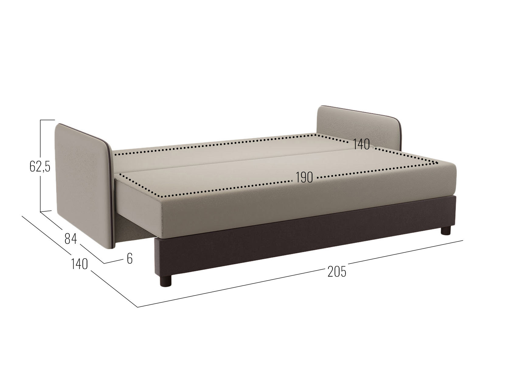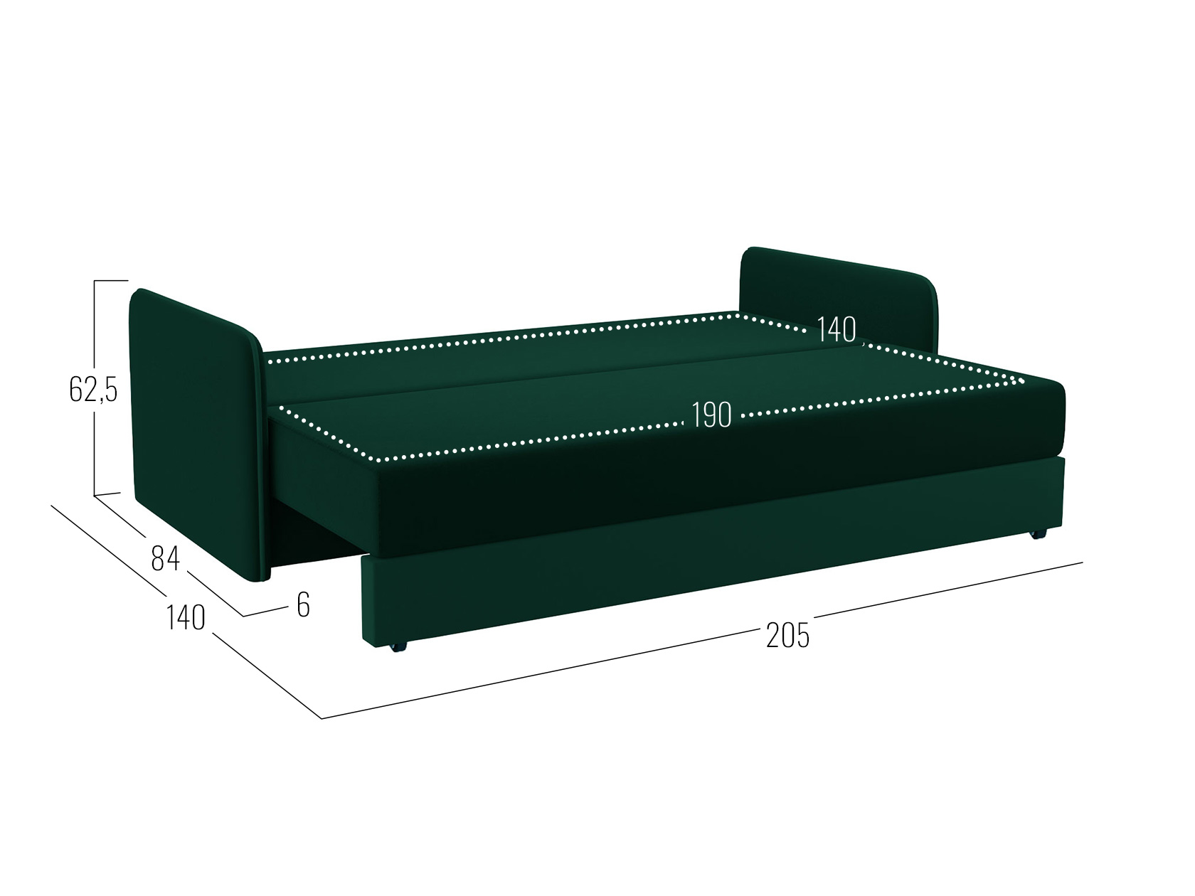 Размер ящика для белья: 59,5 х 190 см.