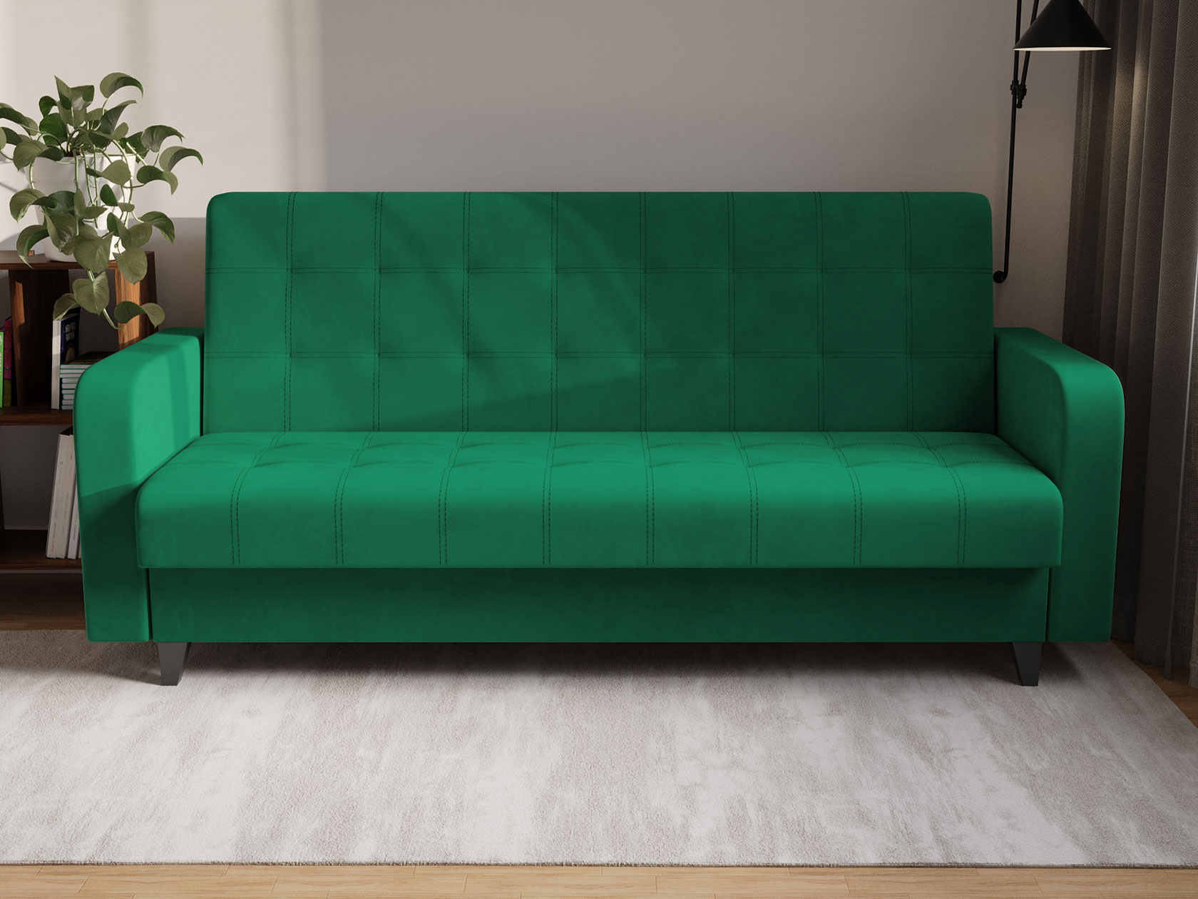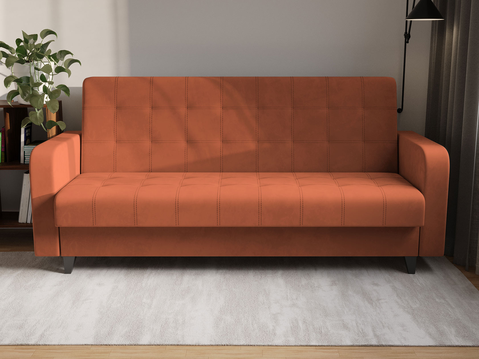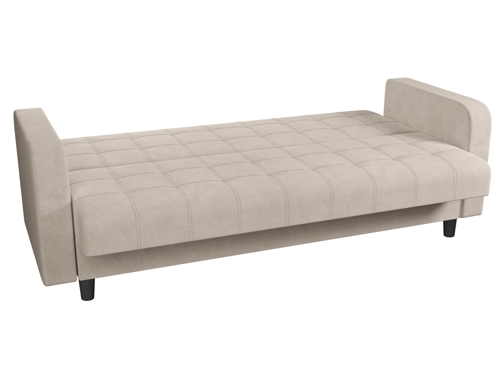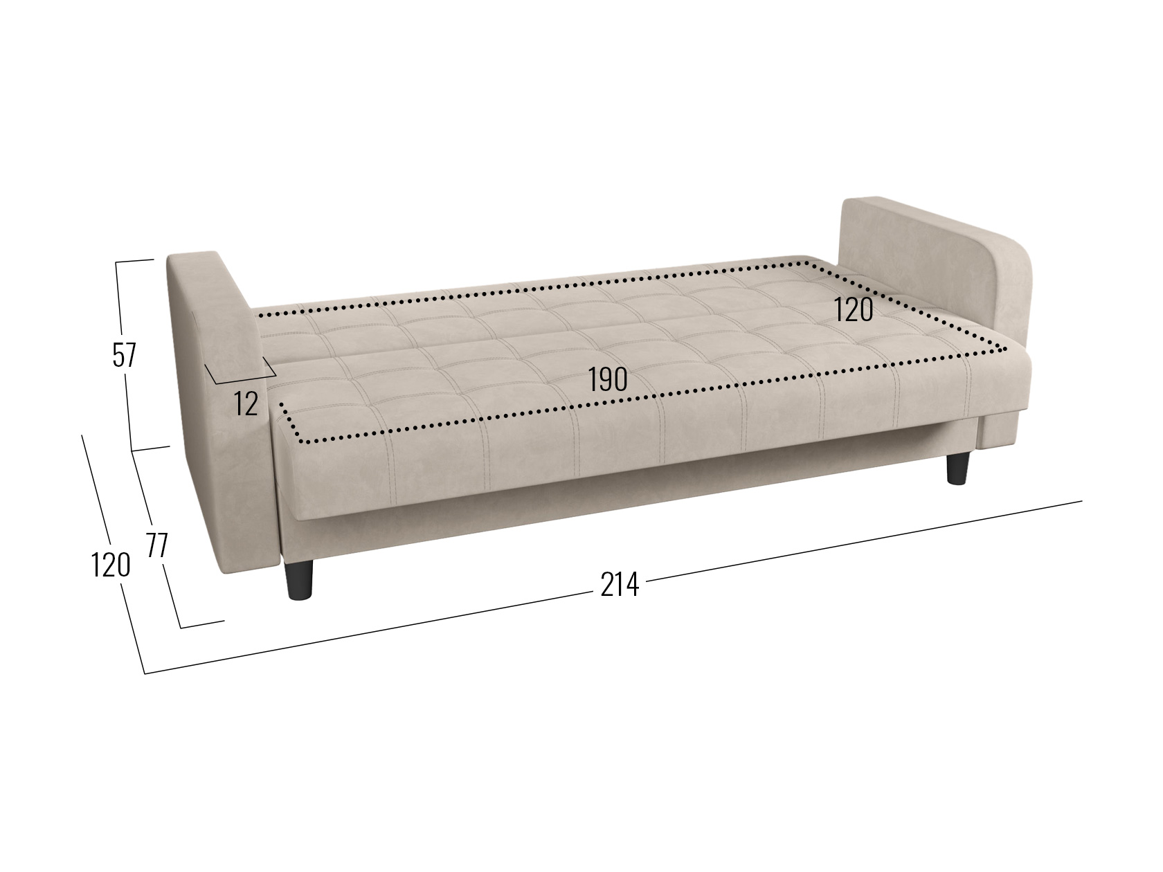 Прямой диван Грант подходит для любого интерьера. Декоративная строчка подчеркивает простой силуэт модели, а удобные подлокотники создают дополнительный комфорт. Диван легко раскладывается, образуя полноценное место для сна. В процессе трансформации не портится напольное покрытие, что важно для повседневного использования. Бельевой ящик с двумя секциями — практичное дополнение модели.