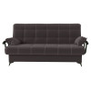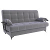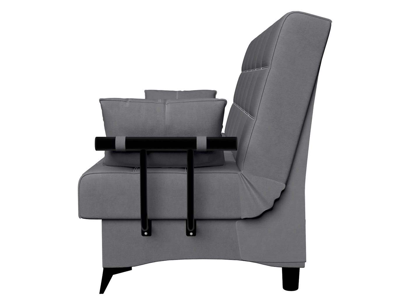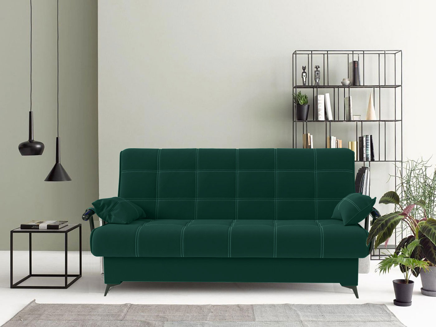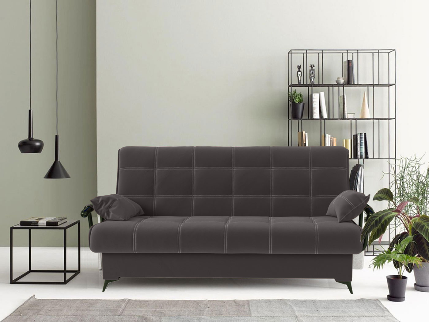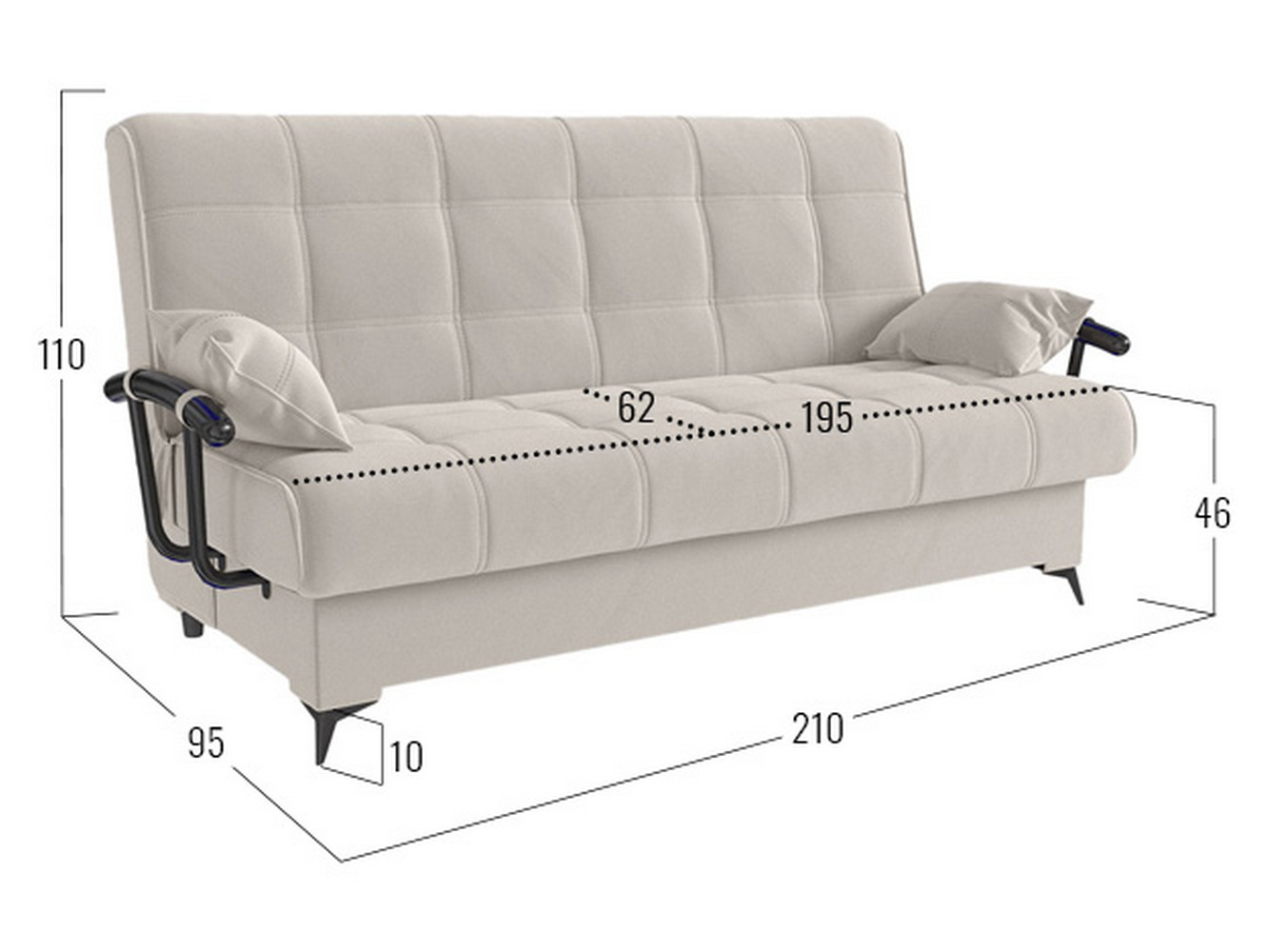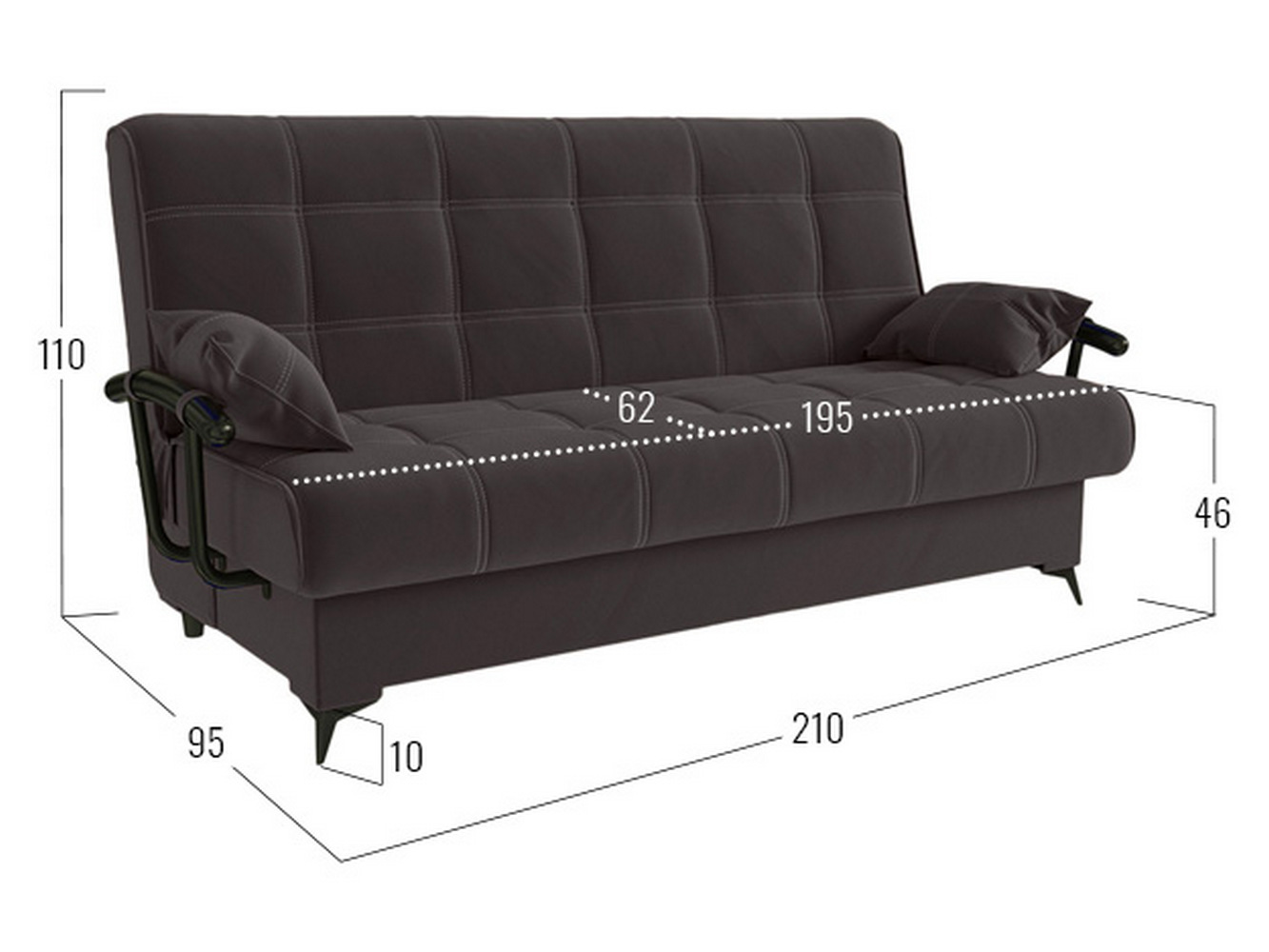 Прямой диван Теон с подлокотниками — комфортабельная и практичная модель с привлекательным дизайном. Двойная прострочка, подлокотники с подушками и высокие элегантные ножки создают запоминающийся облик. Механизм трансформации раскладывается не касаясь пола, поэтому не царапает покрытие и не сдвигает ковер. Бельевой ящик создает дополнительное место для хранения.
