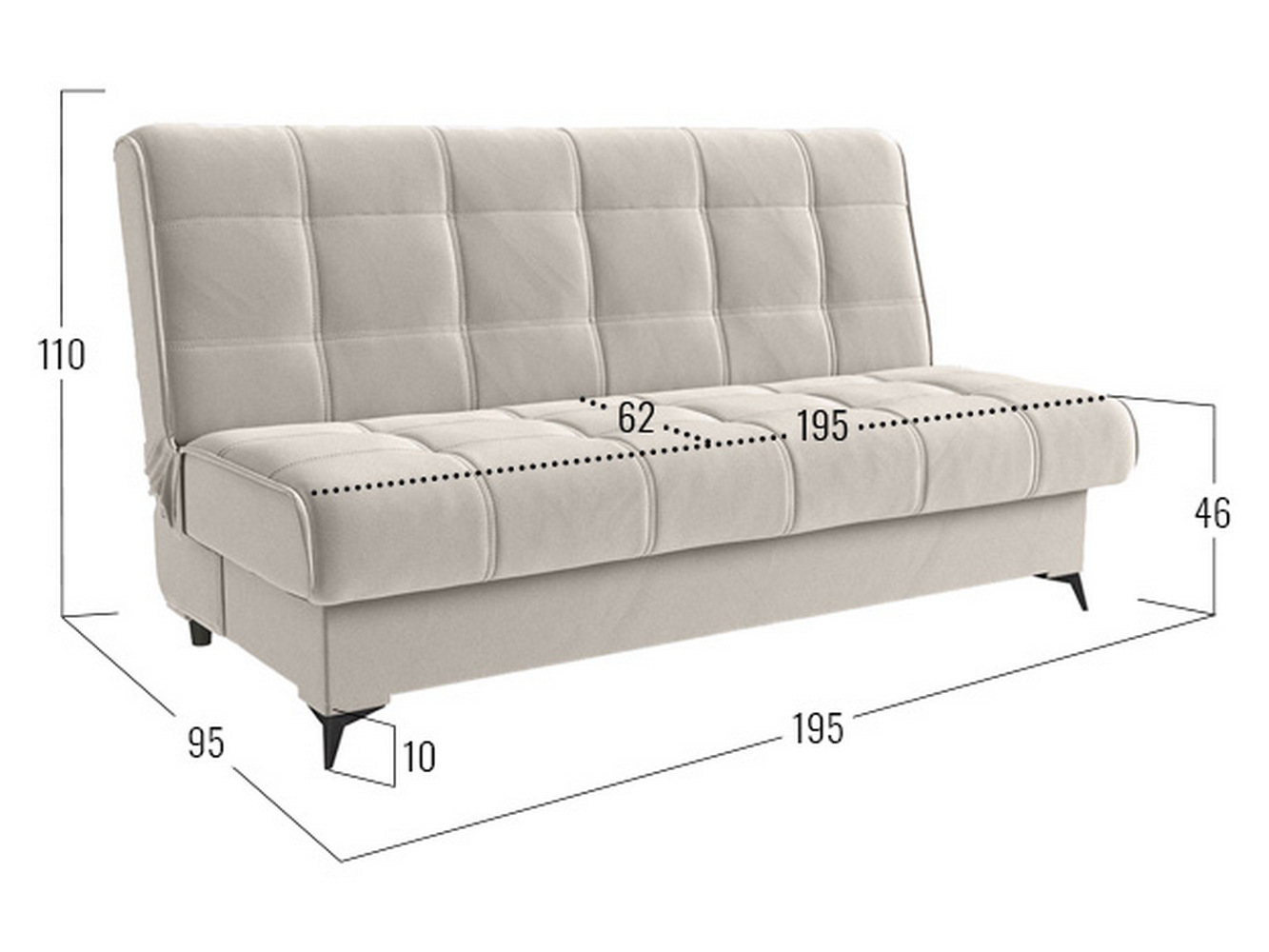 Надежный механизм трансформации подходит для ежедневного использования. Диван легко и быстро раскладывается, образуя комфортабельное спальное место. Бельевой ящик под сиденьем отлично подходит для постельных принадлежностей и других необходимых вещей.